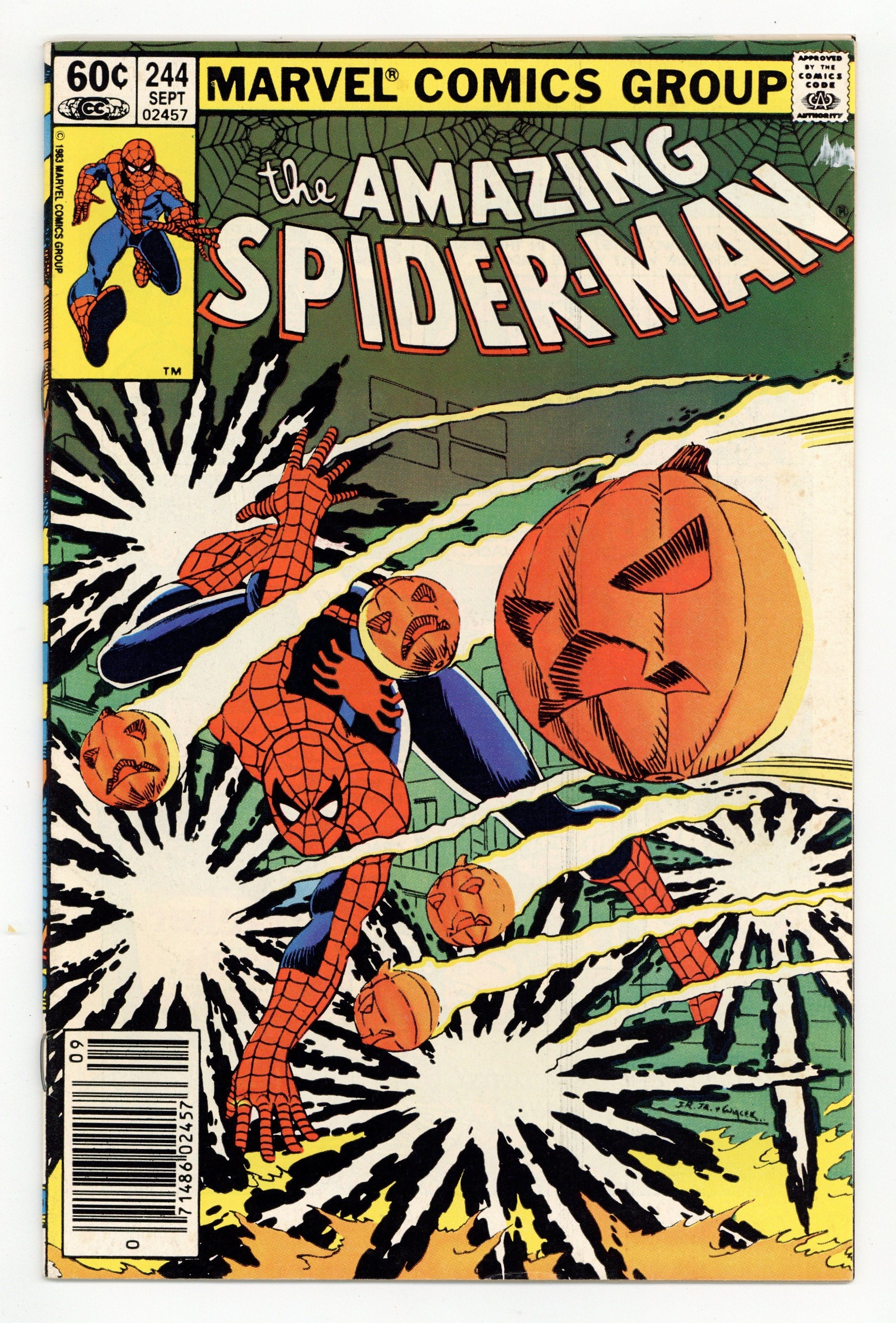 Newsstand Edition. "Ordeals!" Part 1 of 2. Third appearance of the Hobgoblin. Script by Roger Stern. Art by John Romita Jr. (breakdowns) and Klaus Janson (finishes). Cover by John Romita Jr. and Bob Wiacek. Last issue Peter Parker made the very tough decision to drop out of graduate school. At this point Aunt May doesn't know that he did. When she finds out...she won't be happy. Meanwhile the burglaries at the Osborn facilities continue! Fortunately, on the eastside docks the web-slinger catches one in progress! Can Spider-Man corral the Hobgoblin this time? Cameo appearances by the Black Cat, Mary Jane Watson, Harry & Liz Osborn, and Dr. Morris Sloan. (Note: This two-part story was reprinted in the 1992 trade paperback: The Origin of the Hobgoblin; and the 2011 trade paperback also titled: The Origin of the Hobgoblin.) 36 pgs. Cover price $0.60.