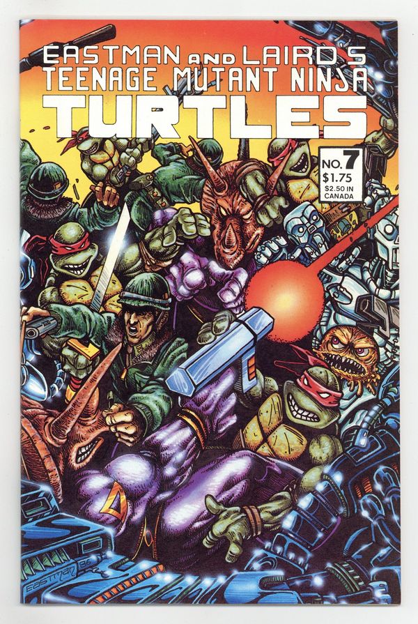 Corben color story. The original series that introduced the Turtles to the world. Returning to Earth, the Turtles learn the role the Utroms played in their origin. Story, art and cover by Kevin Eastman & Peter Laird. Black and white; 32 pages. Cover price $1.75.