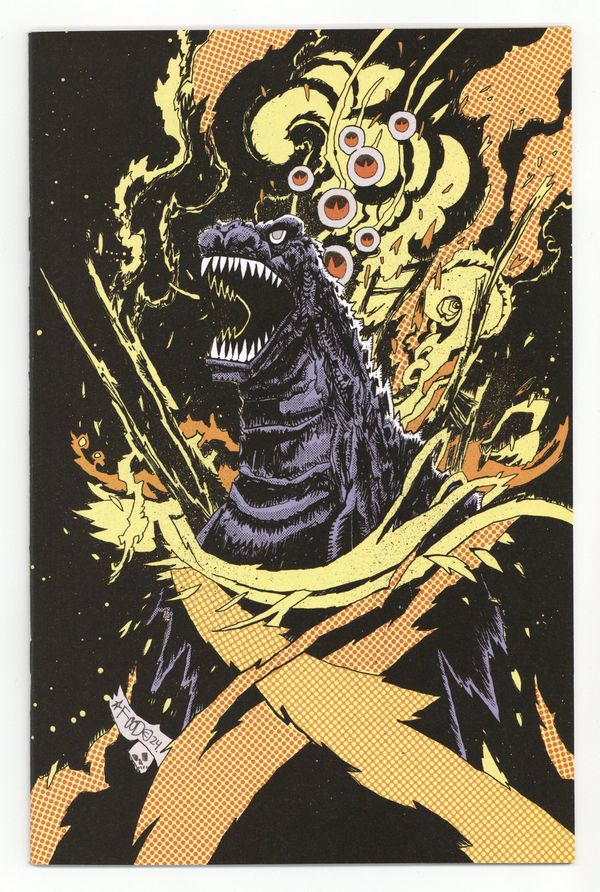 Tags: GodzillaPublished Jan 2025 by IDW Publishing.$29.00Limited 1 for 25 Retailer Incentive Variant Cover. Written by Tom Scioli. Art by Tom Scioli. Cover by Jim Mahfood. Even in the face of the combined efforts of Jay Gatsby, Sherlock Holmes, Jules Verne, and the Time Machinist, Godzillas global rampage shows no sign of slowing down. That leaves our gang with no choice but to enlist the help of the terrifyingly evil DRACULA.Its Godzilla versus vampires in the thrilling finale to Godzillas Monsterpiece Theatre. Will our heroes (and villains) prevail? Will saving Daisy finally be enough to change Gatsbys fate and uncross the stars for these lovers? 44 pages, PC/B&W. Cover price $6.99.