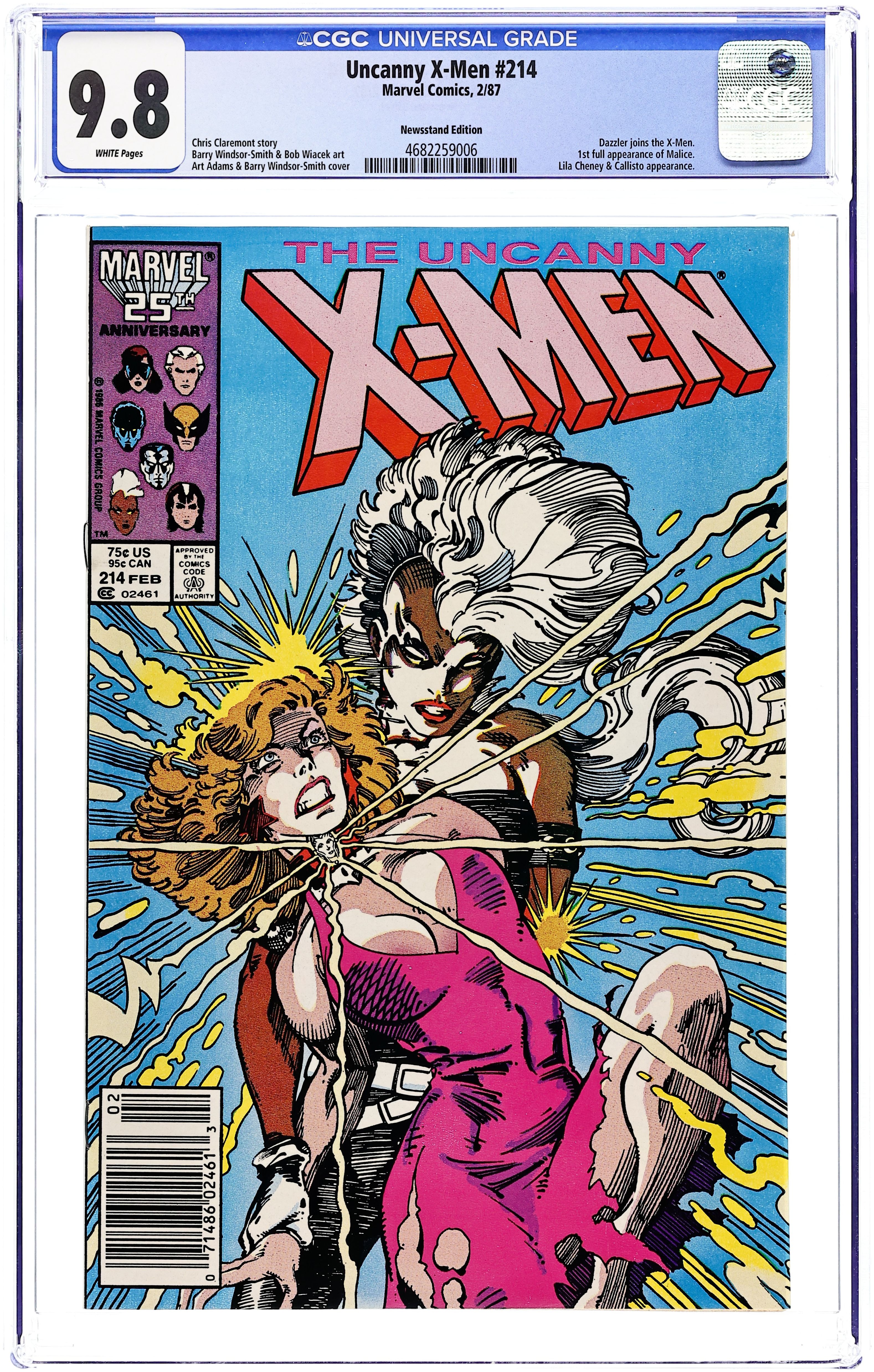 Newsstand Edition. "With Malice Towards All!" Story by Chris Claremont. Art by Barry Windsor-Smith. Dazzler returns! But when the mutant villain Malice usurps control over her, the X-Men may wish she had stayed away. 36 pgs. Cover price $0.75.