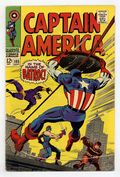 Cover pencils by Jack Kirby and John Romita (alterations), inks by Dan Adkins and John Romita (alterations). "In the Name of Batroc!", script by Stan Lee, pencils by Jack Kirby, inks by Dan Adkins; A television crew invites Captain America to go over some old footage of his battles during World War II; Batroc the Leaper hires the Swordsman and the Living Laser to help him commit a crime; Bucky Barnes flashback. Letter to the editor from comics historian Peter Sanderson Jr. 36 pgs., full color. $0.12. Cover price $0.12.