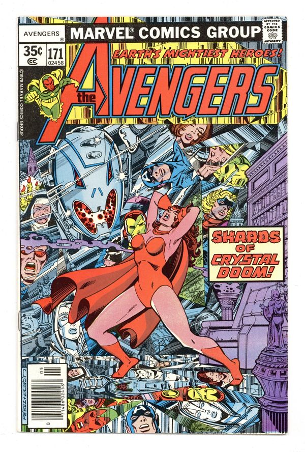 The Korvac Saga: Part 4 of 10 - "Where Angels Fear to Tread" Guest-starring Ms. Marvel. Script by Jim Shooter. Pencils by George Perez. Inks by Pablo Marcos. Cover by George Perez and Terry Austin. Earth's Mightiest Heroes are in hot pursuit of Jocasta through the streets of Manhattan! During the chase the Avengers pick up an ally, Ms. Marvel, and locate the female robot's final destination...a convent! Is Ultron hiding out among the nuns? The evil one is full of surprises! And the next one is for the Scarlet Witch, the most dangerous avenger to the adamantium monster! It's another classic battle between the Avengers and Ultron! An excellent issue! (Notes: Ultron returns in Avengers 202. This issue was reprinted in 1999 in Ultron Unleashed 1. The letters page includes a letter from comics editor Kevin Dooley.) 36 pgs. Cover price $0.35.