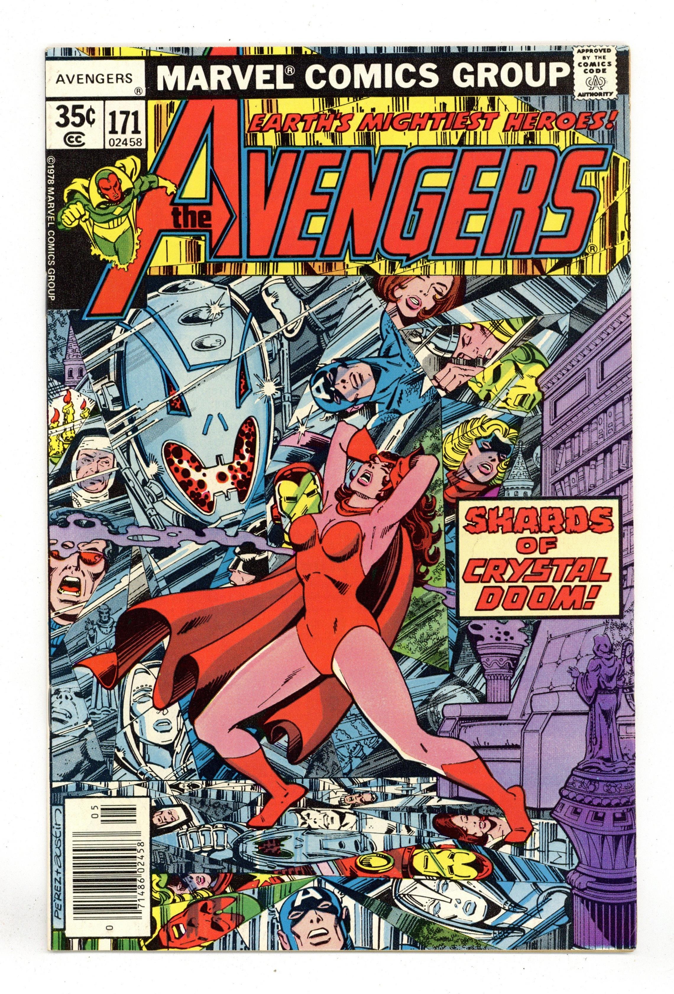 Tags: Avengers The Korvac Saga (part 4), Marvel Legacy Numbering: Avengers (part 171)$7.00The Korvac Saga: Part 4 of 10 - "Where Angels Fear to Tread" Guest-starring Ms. Marvel. Script by Jim Shooter. Pencils by George Perez. Inks by Pablo Marcos. Cover by George Perez and Terry Austin. Earth's Mightiest Heroes are in hot pursuit of Jocasta through the streets of Manhattan! During the chase the Avengers pick up an ally, Ms. Marvel, and locate the female robot's final destination...a convent! Is Ultron hiding out among the nuns? The evil one is full of surprises! And the next one is for the Scarlet Witch, the most dangerous avenger to the adamantium monster! It's another classic battle between the Avengers and Ultron! An excellent issue! (Notes: Ultron returns in Avengers 202. This issue was reprinted in 1999 in Ultron Unleashed 1. The letters page includes a letter from comics editor Kevin Dooley.) 36 pgs. Cover price $0.35.
