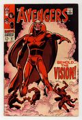 Tags: Marvel Legacy Numbering: Avengers (part 57), Avengers$260.00First appearance of the Vision in "Behold...the Vision!" Part 1 of 2. Script by Roy Thomas. Pencils by John Buscema. Inks by George Klein. Cover by John Buscema and George Klein. One of the landmark issues of the silver age! On a rainy night in Manhattan, a strange being enters Janet Van Dyne's apartment and suddenly collapses! The Wasp quickly calls Goliath; and they take the red-hued stranger to Avengers Mansion for examination! Once their Hank Pym discovers that the Vision is a human being constructed of synthetic materials - a synthezoid in fact! When the Vision wakes up, he remembers that Ultron sent him to destroy the Avengers! But now the Vision wants to flip the script on his creator! So he leads Earth's Mightiest Heroes back to Ultron's underground lair! Could this be a trap? Either way Ultron-5 is waiting! And the battle is coming! Will the Vision prove worthy of the Avengers' trust? Cameo appearance by the Black Widow. Avengers Lineup: Black Panther, Goliath, Hawkeye, and the Wasp. (Notes: The synthezoid avenger is not to be confused with the golden age Vision (aka Aarkus). Marie Severin contributed pencils to page 3 - the second to last panel. The letters page includes a letter from comics writer Tony Isabella. This issue was reprinted in Marvel Treasury Edition (1974) #7 and also in Marvel Super Action #18.) 36 pages. Cover price $0.12.