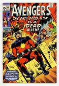 $27.00"The Only Good Alien... " Part 1 of 9. Guest-starring Captain Marvel. Script by Roy Thomas. Pencils by Sal Buscema. Inks by Sam Grainger. Cover by Sal Buscema. The classic Kree/Skrull War storyline starts with a bang as Earth's Mightiest Heroes and Rick Jones pursue Captain Marvel on the streets of Miami! Wow, why are the Avengers chasing the Kree Warrior? Especially after Wanda, Pietro, and the Vision just fought alongside him several hours ago in the Baxter Building vs. Annihilus! Dangerously though, the cosmic superhero's body is teeming with deadly radiation after spending too much time in the Negative Zone! Once the Avengers capture Captain Marvel, they take him to Cape Canaveral in hopes of saving his life! Meanwhile on Hala, the Kree homeworld, Ronan the Accuser leads a rebellion against the Supreme Intelligence! Ronan's actions will have immediate and far-reaching effects on the Milky Way Galaxy and of course Earth's Mightiest Heroes! Cameo appearance by Sentry 459. Flashback cameo by Mr. Fantastic to recap his escape from the Negative Zone in Fantastic Four 110. Avengers Lineup: Quicksilver, Scarlet Witch, and the Vision. (Notes: Captain Marvel's participation in the Kree/Skrull War occurs while his own series was on a 2-year hiatus. Ronan previously appeared in Captain Marvel 16. Annihilus appears next in Marvel Team-Up 2. The full Kree/Skrull War saga was reprinted in 2000 in the trade paperback: The Avengers -- The Kree-Skrull War.) 36 pages. Cover price $0.15.