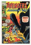 $28.00"Judgment Day" Part 2 of 9. Guest-starring Captain Marvel. Script by Roy Thomas. Pencils and Inks by Sal Buscema. Cover by Sal Buscema. Kree Sentry 459 attacks without warning at the Cape! And Quicksilver, the Scarlet Witch, and the Vision are quickly knocked back on their heels! The giant sentry grabs Captain Marvel and then vanishes! Where did the powerful robot go? In the meantime a call for help comes into Avengers Mansion from the Wasp! Something has gone horribly wrong with Yellowjacket's scientific expedition in Alaska! In no time at all, Earth's Mightiest Heroes zoom to the Last Frontier...and discover a jungle on the edge of the Arctic Circle! And guess who else is there: Sentry 459 and Ronan the Accuser! Wow, the master plan of the Kree empire has come to the Land of the Midnight Sun! And the rumble in the jungle Avengers-style is coming next! Cameo appearance by Carol Danvers. Flashback cameos by the Fantastic Four, Super-Skrull, and the Supreme Intelligence. Avengers Lineup: Goliath, Quicksilver, Scarlet Witch, Vision, Yellowjacket, and the Wasp. (Note: Sentry 459 formerly appeared in Captain Marvel (1st series) 1 & 2.) 36 pages. Cover price $0.15.
