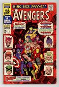 $44.00"The Monstrous Master Plan of the Mandarin!" Script by Roy Thomas. Pencils by Don Heck. Inks by George Roussos (as George Bell). Cover by John Buscema and George Roussos (with John Romita touch-ups). The very first Avengers Annual is a blockbuster as the original team of avengers joins with the current team -- to battle six of their greatest foes! The Mandarin returns with a new scheme to conquer the world via a large synthetic diamond. However he needs help to accomplish his goal. So he sends his comrades in arms to three different continents to collect diamonds and wreak havoc! But Earth's Mightiest Heroes stand in their way! In South America Iron Man, Goliath, and the Wasp battle Power Man (aka Erik Josten) and the Swordsman! While in Asia Hercules and the Scarlet Witch clash with the Enchantress and the Executioner! And finally in Africa, Hawkeye and the thunder god face off with the Living Laser! But on the dark continent, the Mandarin has a special surprise waiting: the awesome android called Ultimo! Wow, Thor vs. Ultimo! A battle worth the cover price alone! Eventually, the full contingent of avengers meets the Mandarin inside his orbiting space station for the final showdown! A great annual! Cameo appearances by Jarvis and Nick Fury. Second feature: One-page pin-up of Hercules by Don Heck and George Roussos. Third feature: Two-page diagram of Avengers Mansion. Fourth feature: One-page pin-up of the Black Widow, Scarlet Witch, and Wasp by Don Heck and George Roussos. Fifth feature: One-page pin-up of all the avengers to date. Avengers Lineup: Captain America, Goliath, Hawkeye, Hercules, Iron Man, Quicksilver, Scarlet Witch, Thor, and the Wasp. (Note: This story takes place between Avengers (1st series) #44 and #45.) 68 pages. Cover price $0.25.