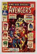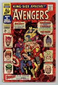 $40.00"The Monstrous Master Plan of the Mandarin!" Script by Roy Thomas. Pencils by Don Heck. Inks by George Roussos (as George Bell). Cover by John Buscema and George Roussos (with John Romita touch-ups). The very first Avengers Annual is a blockbuster as the original team of avengers joins with the current team -- to battle six of their greatest foes! The Mandarin returns with a new scheme to conquer the world via a large synthetic diamond. However he needs help to accomplish his goal. So he sends his comrades in arms to three different continents to collect diamonds and wreak havoc! But Earth's Mightiest Heroes stand in their way! In South America Iron Man, Goliath, and the Wasp battle Power Man (aka Erik Josten) and the Swordsman! While in Asia Hercules and the Scarlet Witch clash with the Enchantress and the Executioner! And finally in Africa, Hawkeye and the thunder god face off with the Living Laser! But on the dark continent, the Mandarin has a special surprise waiting: the awesome android called Ultimo! Wow, Thor vs. Ultimo! A battle worth the cover price alone! Eventually, the full contingent of avengers meets the Mandarin inside his orbiting space station for the final showdown! A great annual! Cameo appearances by Jarvis and Nick Fury. Second feature: One-page pin-up of Hercules by Don Heck and George Roussos. Third feature: Two-page diagram of Avengers Mansion. Fourth feature: One-page pin-up of the Black Widow, Scarlet Witch, and Wasp by Don Heck and George Roussos. Fifth feature: One-page pin-up of all the avengers to date. Avengers Lineup: Captain America, Goliath, Hawkeye, Hercules, Iron Man, Quicksilver, Scarlet Witch, Thor, and the Wasp. (Note: This story takes place between Avengers (1st series) #44 and #45.) 68 pages. Cover price $0.25.
