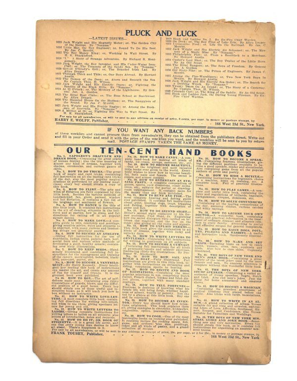 Published Apr 1918 by Harry E. Wolff.$66.00- Spine split 30%. Water damage: Moderate. Staple rust: Moderate.