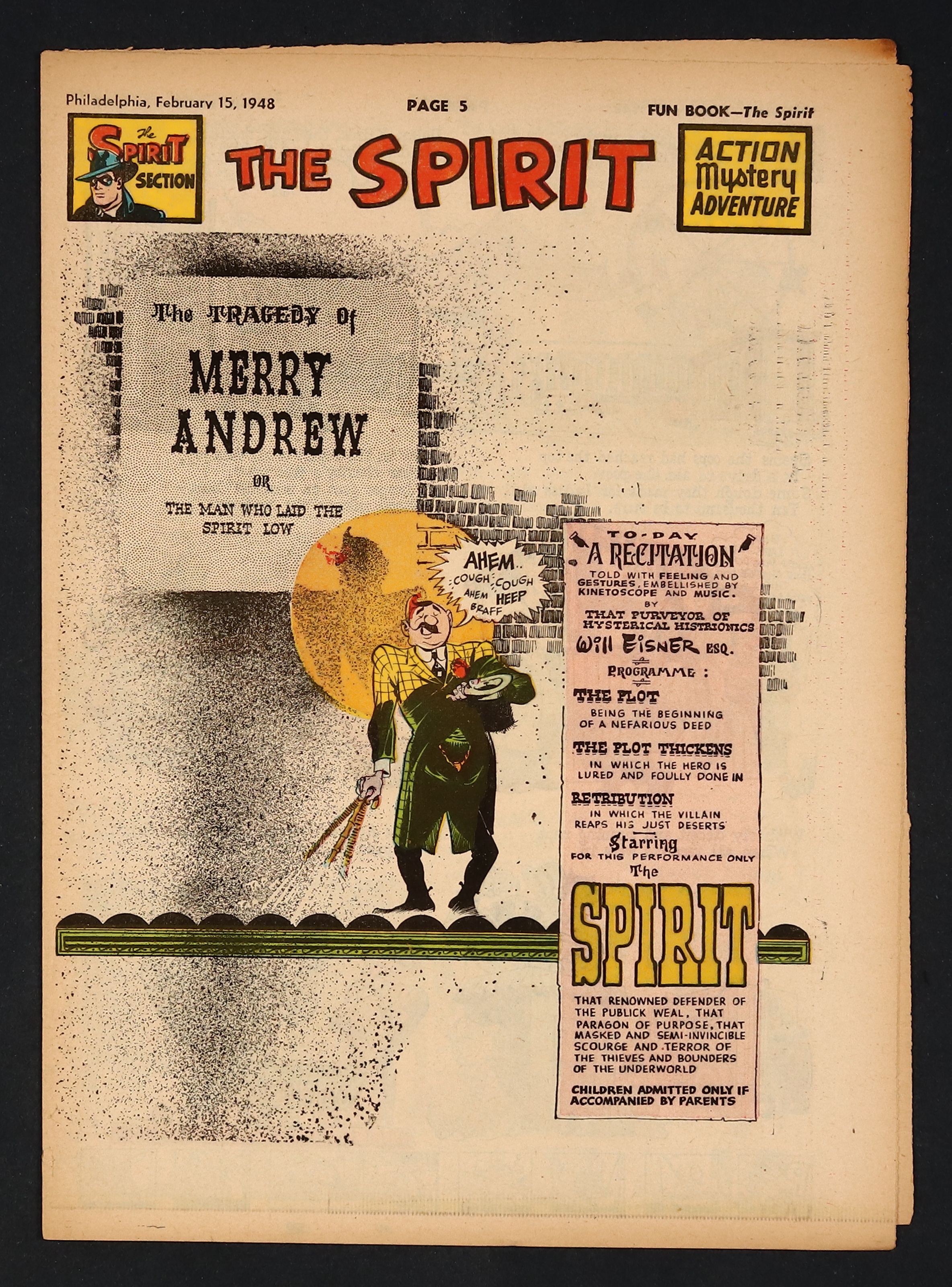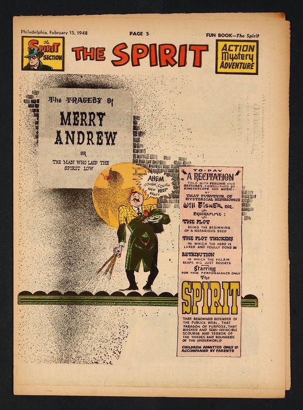 February 15, 1948. Spirit Weekly Newspaper section. Scripts, pencils/inks by Eisner except where noted. Tabloid Sized Newsprint, 10-3/4" x 15", 8 pages, full color.