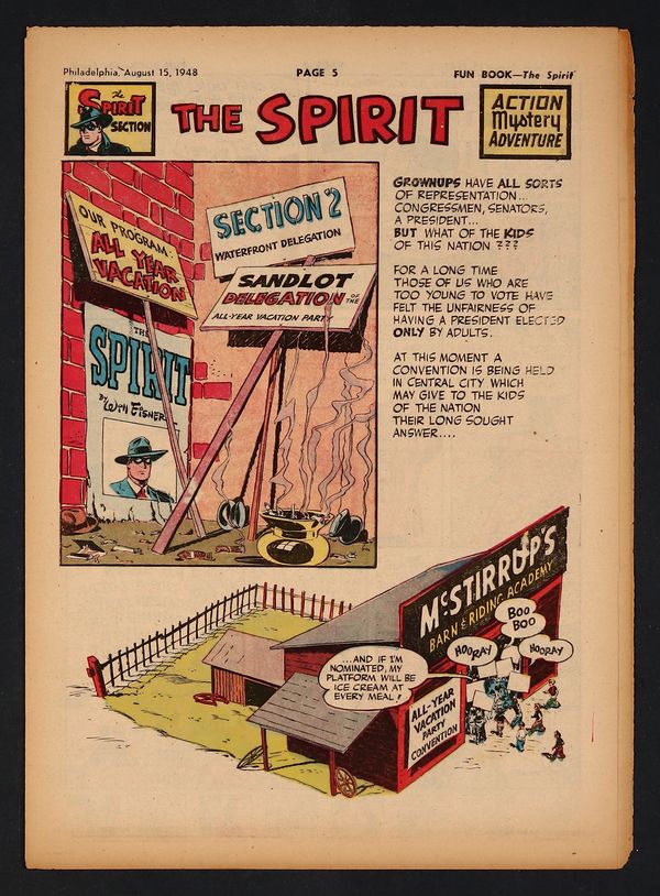August 15, 1948. Spirit Weekly Newspaper section. Scripts, pencils/inks by Eisner except where noted. Tabloid Sized Newsprint, 10-3/4" x 15", 8 pages, full color.