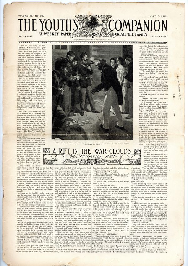 Published Jun 1911 by Perry Mason Company.$2.65Vol. 85, No. 23 - June 8, 1911. Children's magazine with multi-part stories, news, and poems. 11.25" x 16.5". 12 pages. Black and white. Cover price $0.05.