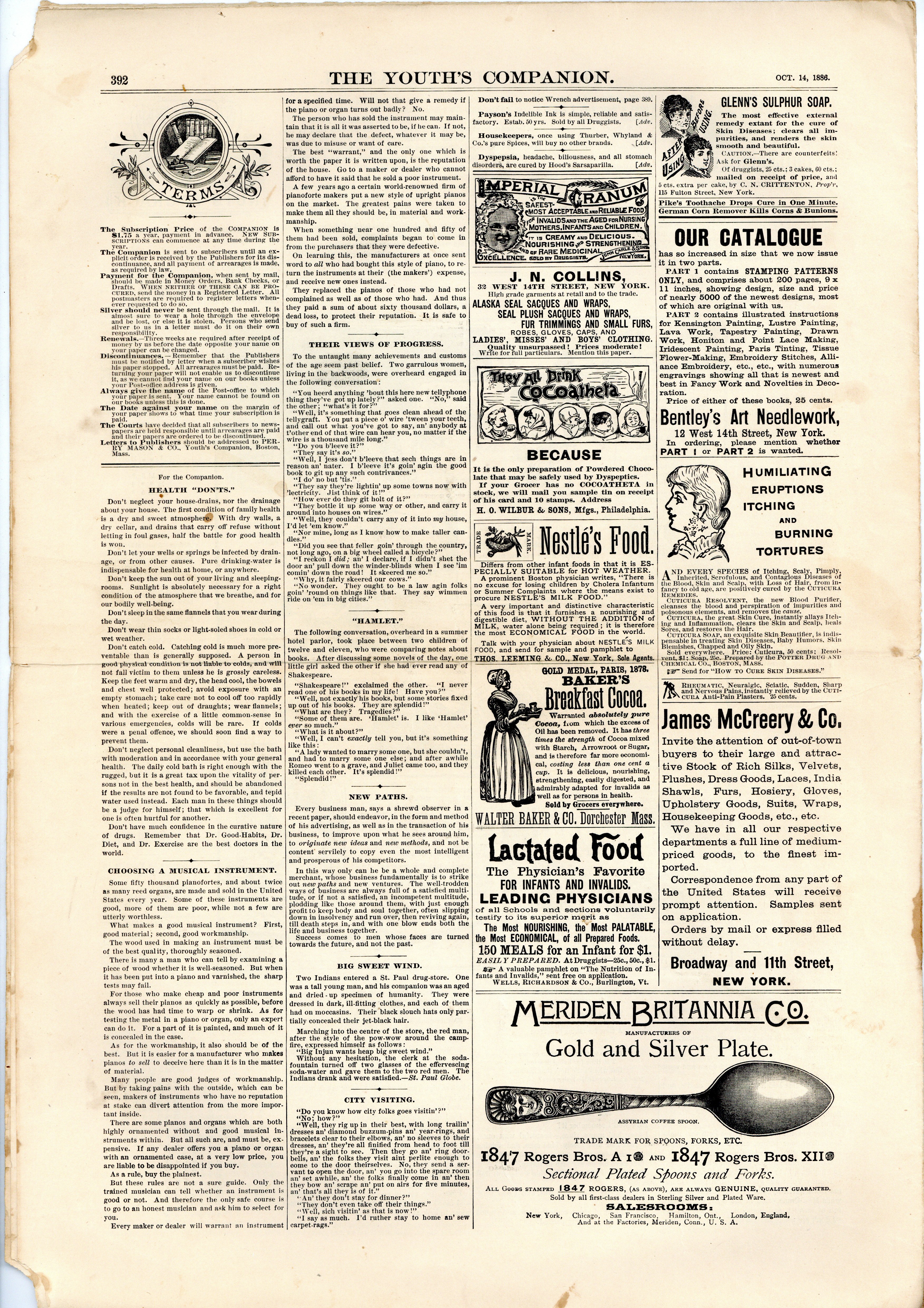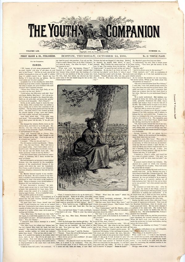 Vol. 59, No. 41 - October 14, 1886. Children's magazine with multi-part stories, news, and poems. 11.25" x 16.5". 12 pages. Black and white. Cover price $0.05.