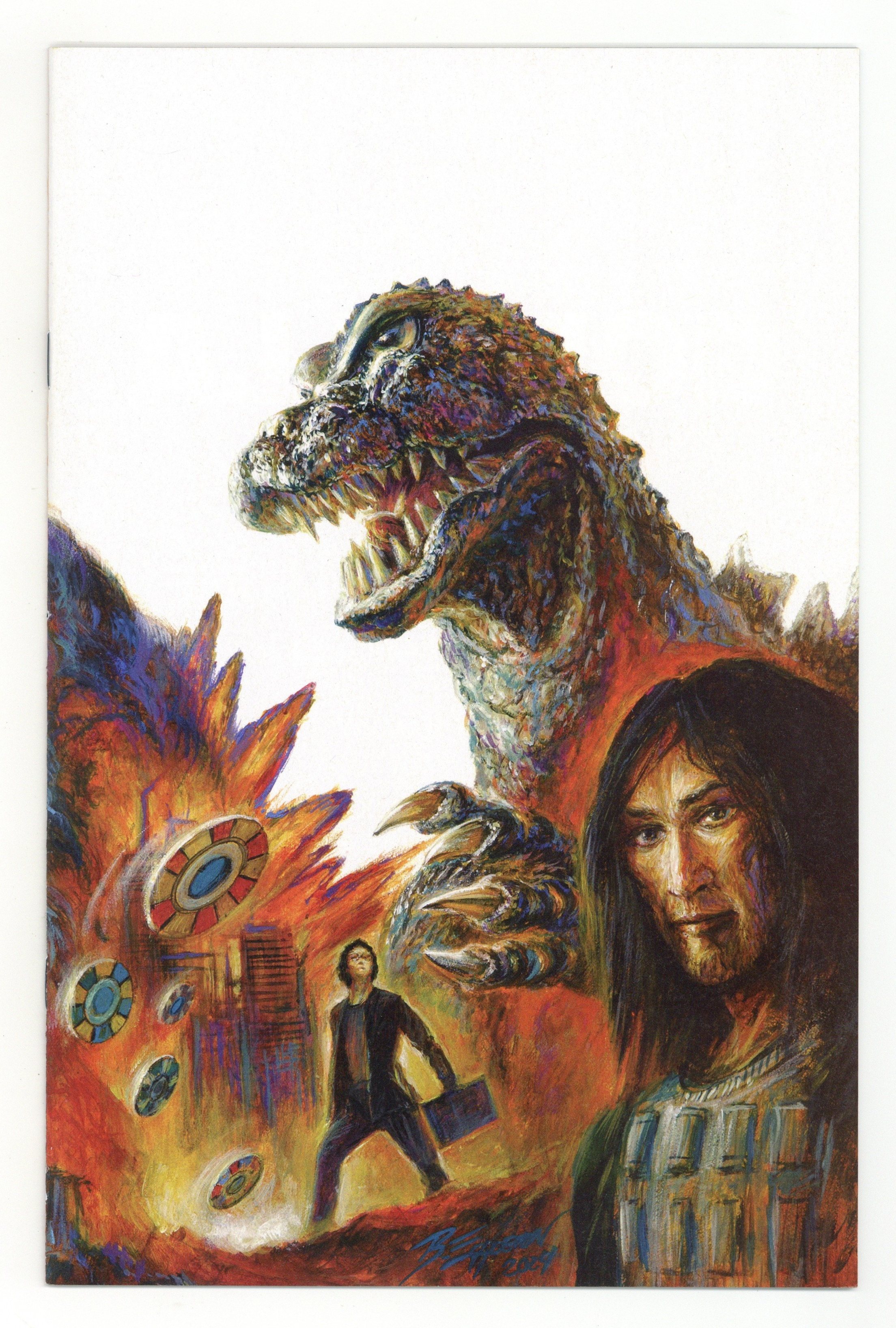 Tags: GodzillaPublished Feb 2025 by IDW Publishing.$25.00Limited 1 for 25 Retailer Incentive Variant Cover. Written by Van Jensen. Art by Kelsey Ramsay. Cover by Bob Eggleton. What if you could predict when and where Godzilla would appear? What if you knew of the perfect opportunity to pull off the heist of the century?Jai is a young man who knows two things: A heist needs a good distraction, and theres no distraction like Godzilla. So, when Jai discovers Godzilla responds to specific energy signals he can send into the atmosphere, he creates the perfect opportunity to stage high-profile heists in the middle of Godzilla attacks.But these heists put Jai on the radar of some very dangerous men, men who want Jai to work with them to pull off the most dangerous job the world has ever seen.Join the superstar crew of Van Jensen (The Flash, Green Lantern Corps, Godfall) and Kelsey Ramsay (Doctor Who: The Fifteenth Doctor, Dark Spaces: Good Deeds) for one last job in Godzilla: Heist. 28 pages, full color. Cover price $4.99.