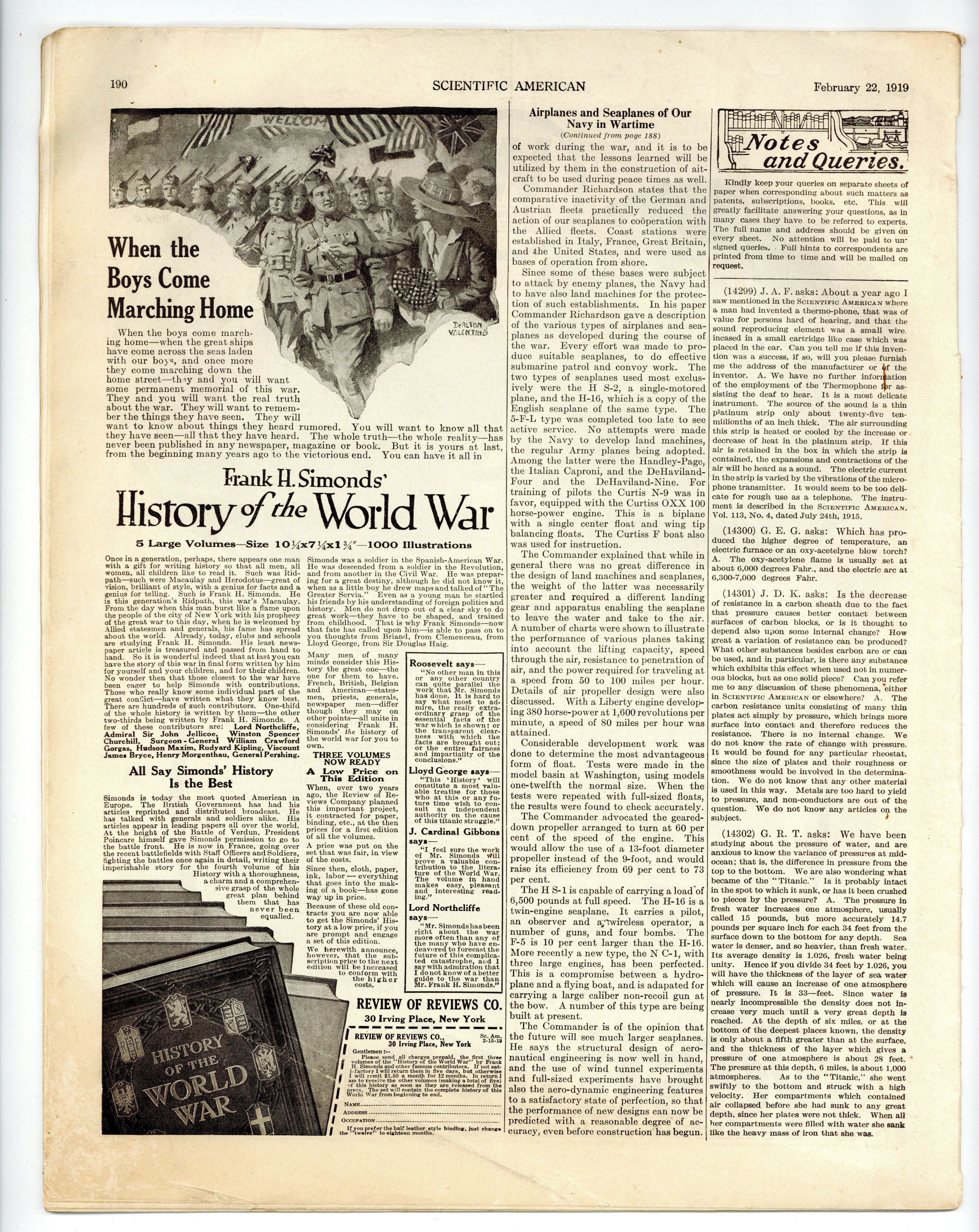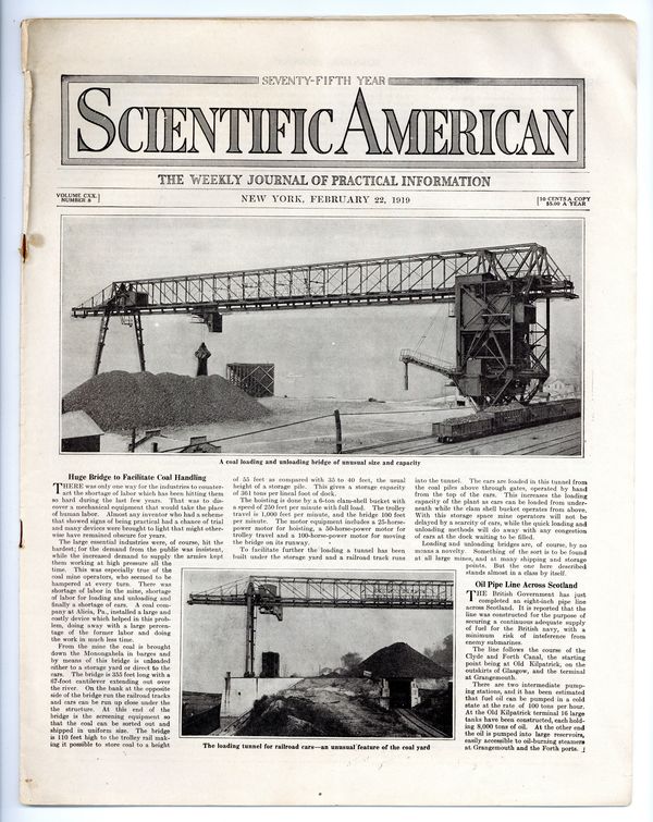 Published Feb 1919 by Scientific American, Inc..$4.00- Spine split 5%. Water damage: Slight. Staple rust: Extensive.
