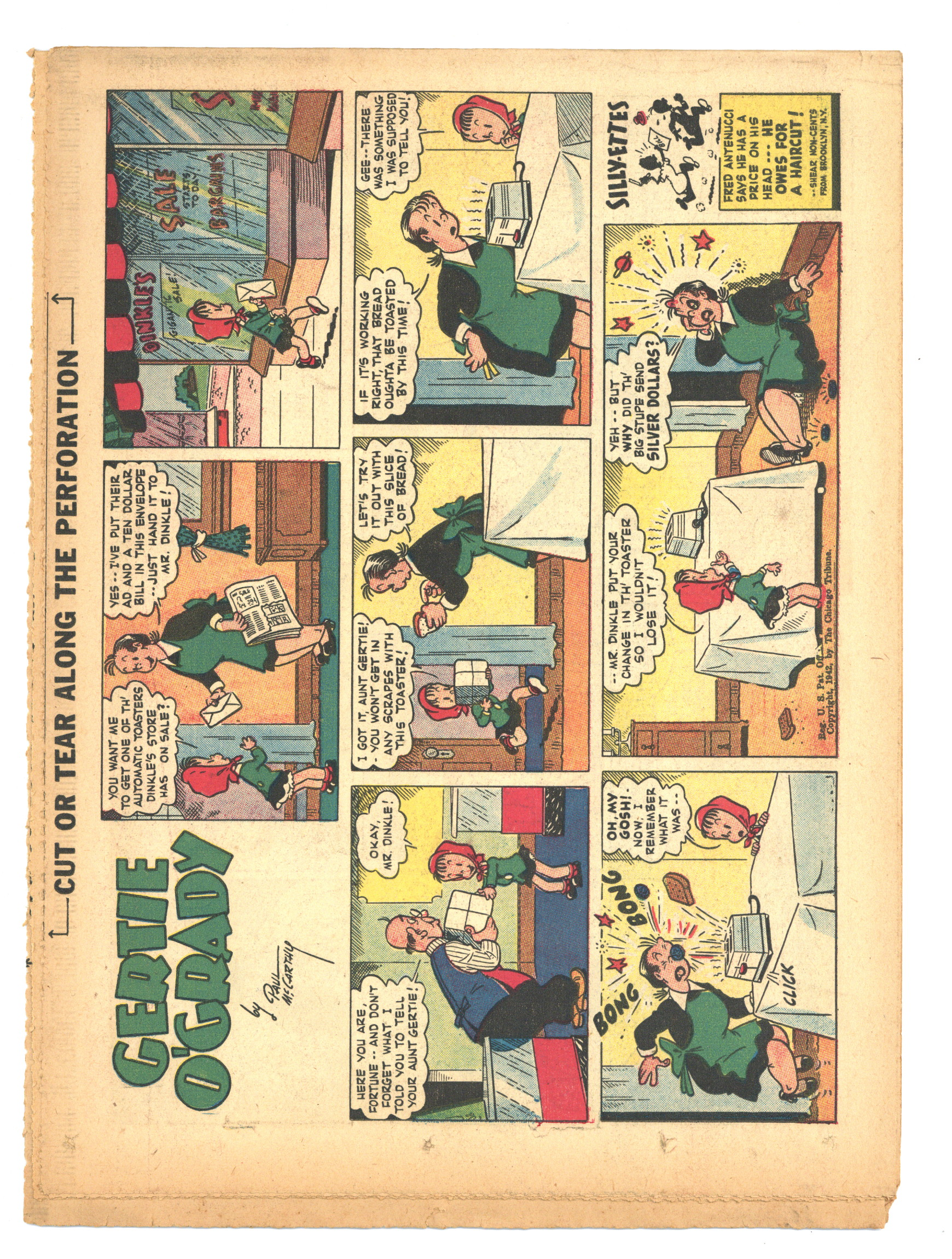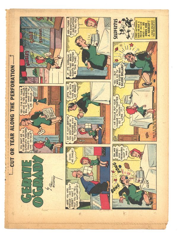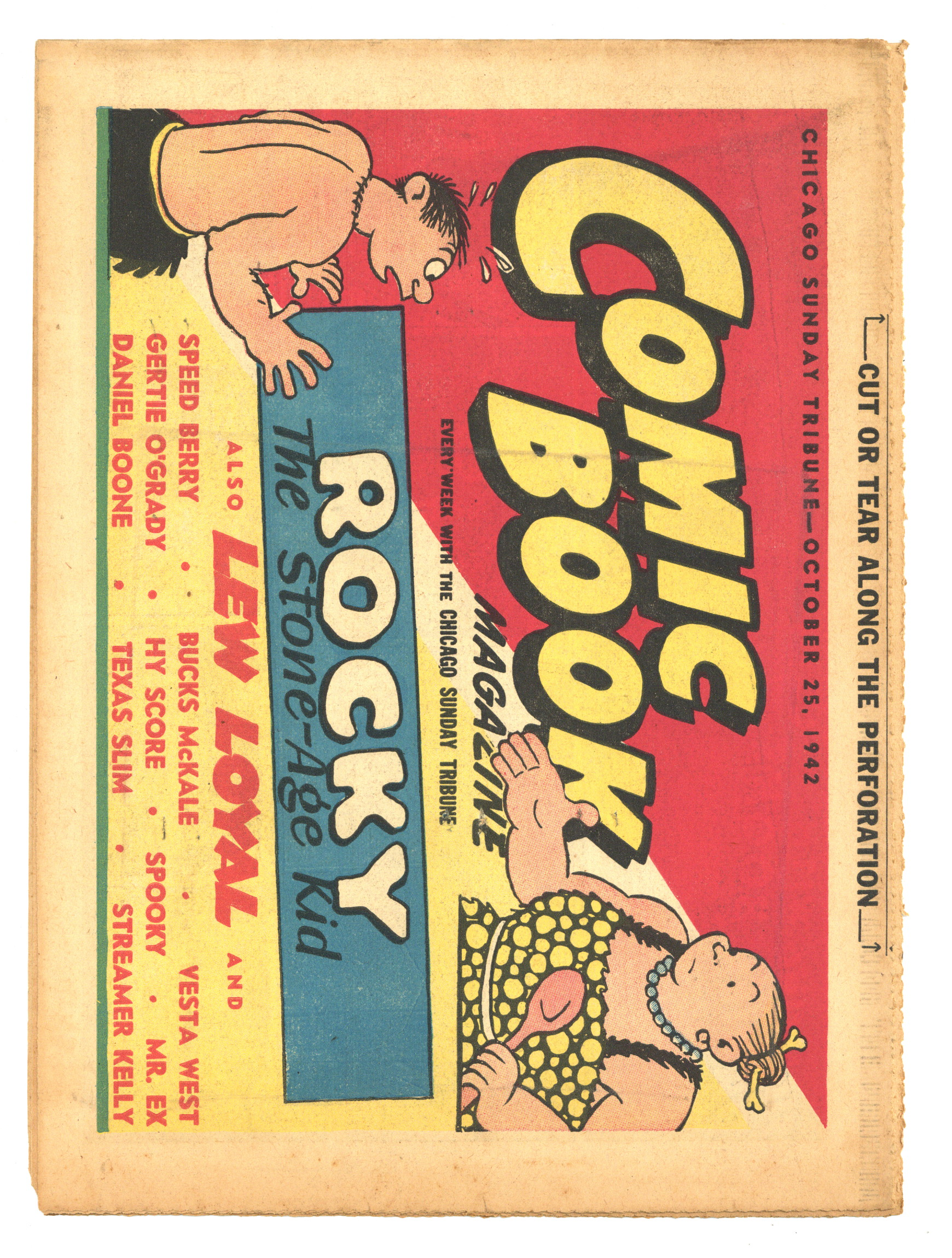 Published Oct 1942 by Chicago Tribune.$40.00Comic Book Magazine (1942) is published by the Chicago Tribune. Enjoy such comic strips as Texas Slim and Dirty Dalton, Lew Loyal, Kit Cabot, Spooky, Fighting with Daniel Boone, and many more. Originally came each Sunday with the Chicago Sunday Tribune. 16 pages, full color, 18.50-in X 13.25-in.