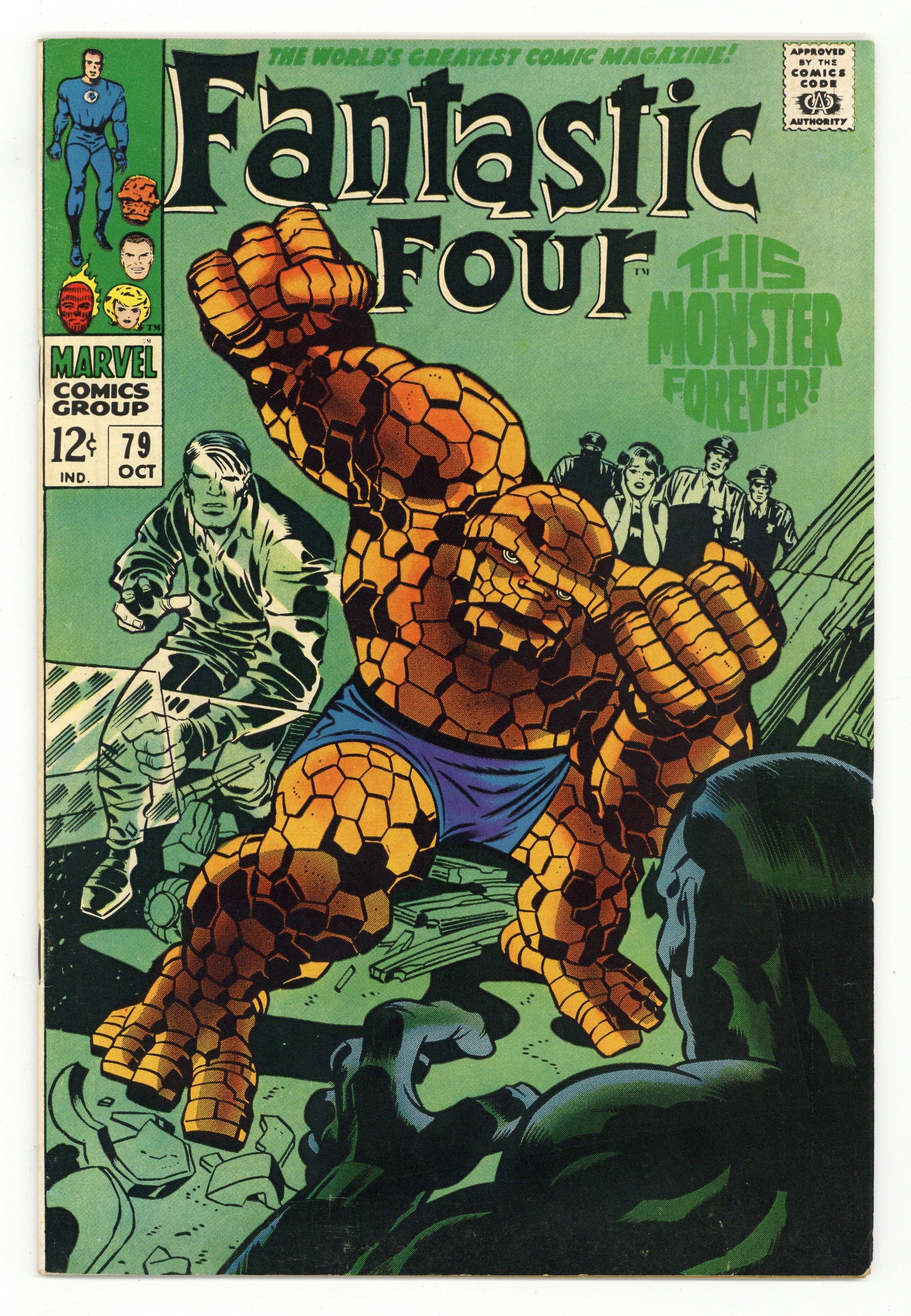 Cover pencils by Jack Kirby, inks by Joe Sinnott. A Monster Forever?, script by Stan Lee and Jack Kirby (co-plot), pencils by Jack Kirby, inks by Joe Sinnott; Ben and Alicia are attacked by a Mad Thinker android; Reed learns of Sue's medical problems but does not tell her. Crystal (of the Inhumans) appearance. in Marvel's Greatest Comics # 61. 36 pgs. $0.12. Cover price $0.12.