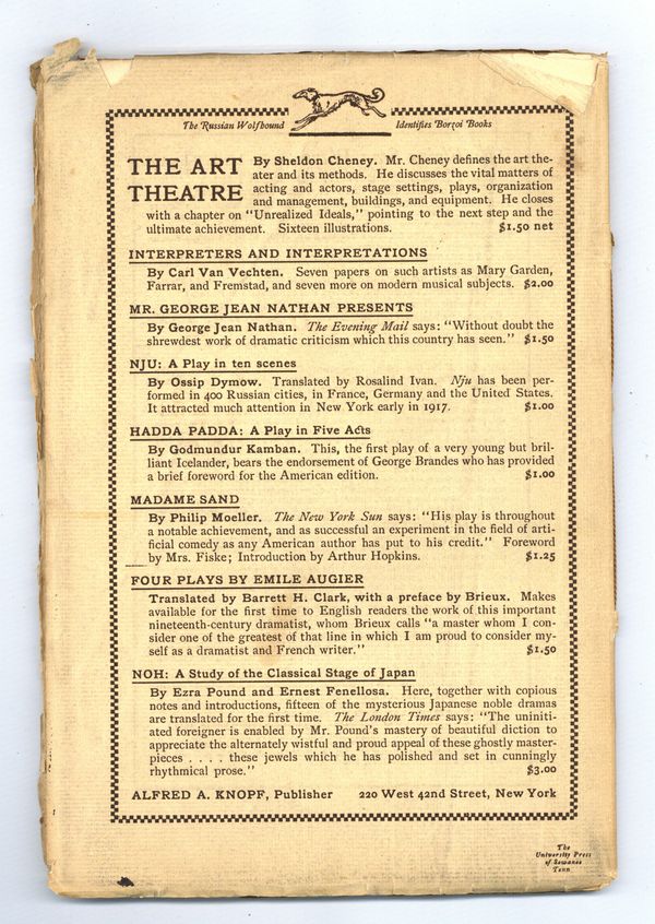 Published Mar 1918 by Theatre Arts, Inc..$28.00- Spine split 20%.