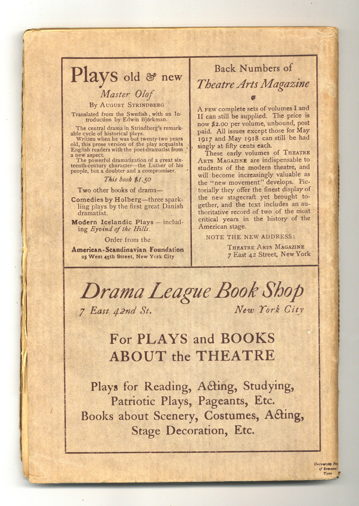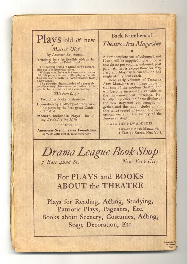 Published Jul 1919 by Theatre Arts, Inc..$35.00- Spine split 5%.