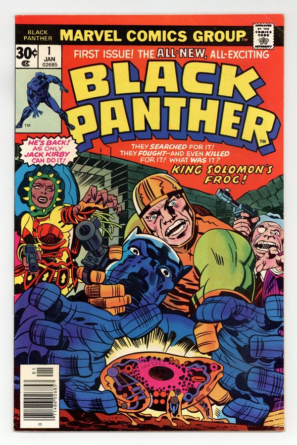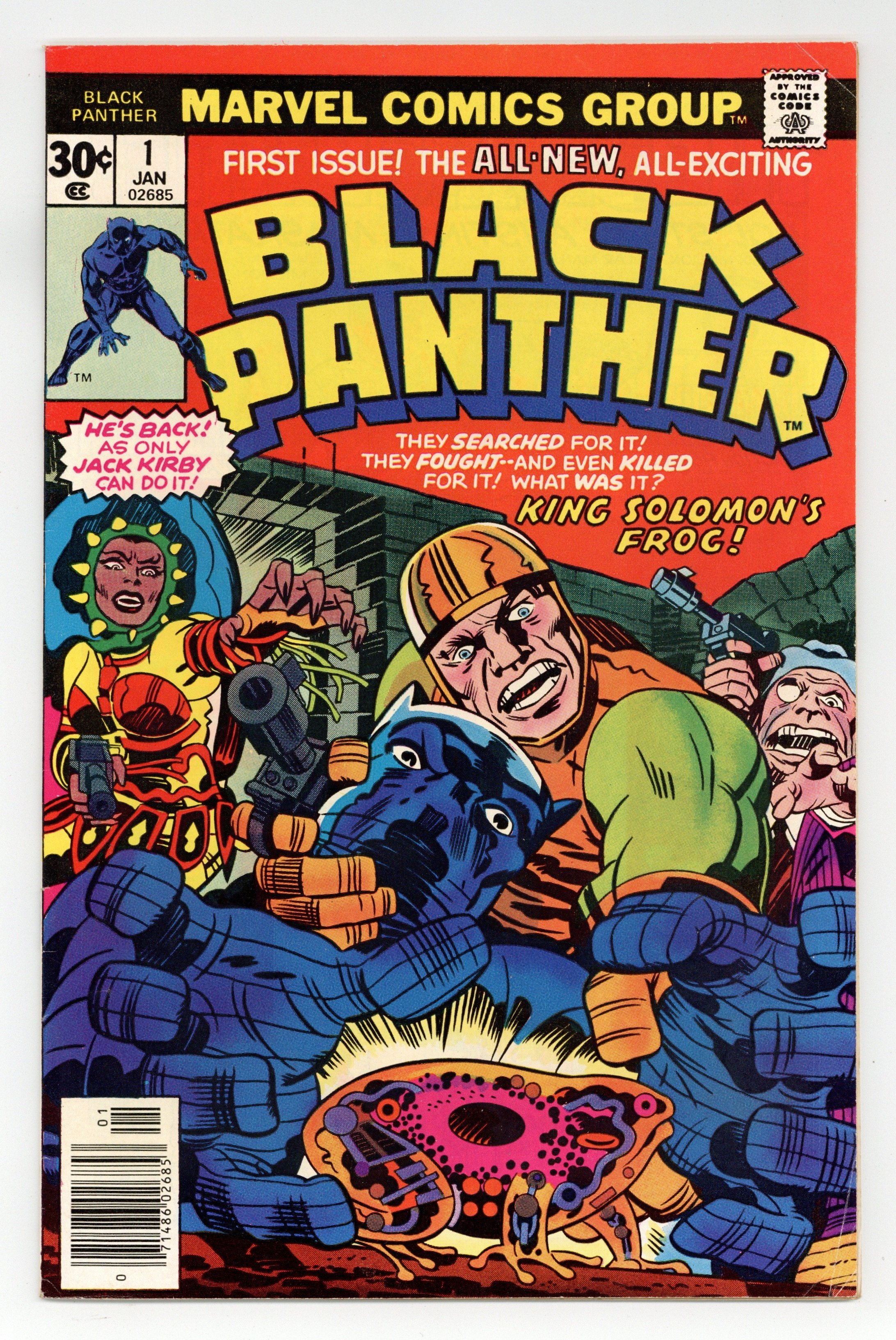 Ends Dec 22 7:48 PM CST Bid History 6 bids Current Bid $31 Your Secret Max Bid If you'd like to bid, please log in or register. Cover pencils by Jack Kirby, inks by John Verpoorten. King Solomon's Frog!, script and pencils by Jack Kirby, inks by Mike Royer; Black Panther helps Abner Little, a member of the Collectors, recover the Brass Frog, an ancient time machine; Due to its dangerous nature, the Frog had previously been hidden away by the Black Panther's grandfather, Azzuri, but was taken by Alfred Queely, a fellow member of the Collectors; After getting the Frog, the Black Panther and Little are attacked by Princess Zanda, another member of the Collectors, for control of the artifact. During the battle, the Frog is activated and a mysterious creature, Hatch-22, appears. Jack Kirby writes about what readers can expect from his new Black Panther. 36 pgs. $0.30. Cover price $0.30.