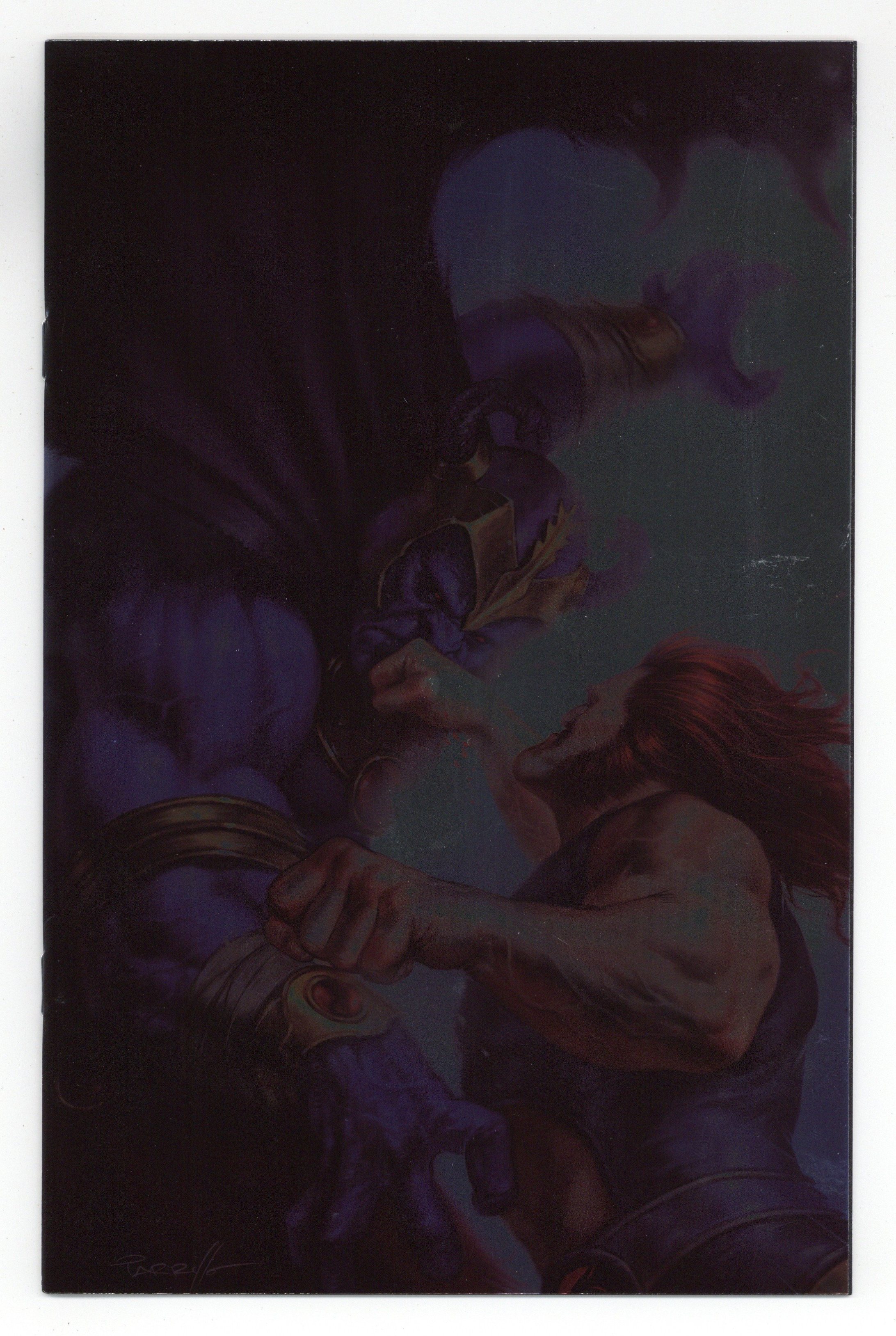 Published 2025 (est.) by Dynamite Entertainment.$3.20Virgin Foil. Written by Declan Shalvey. Art by Drew Moss. Cover by Lucio Parrillo. With Lion-0 and the Eye of Thundera both missing, the ThunderCats are at their most vulnerable making it the perfect time for Mumm-Ra and his evil horde to attack! But help is about to arrive from an unexpected direction when Calica reappears at the Cat's Lair to return the Eye and she hasn't come alone! The five-star creative team of DECLAN SHALVEY and DREW MOSS ramp up the action in ThunderCats #14 spurred on by percussive covers from MOSS, SHALVEY, LUCIO PARRILLO, JAE LEE & JUNE CHUNG, FELIPE MASSAFERA, and MANIX! 32 pages, full color. Rated T Cover price $4.99.
