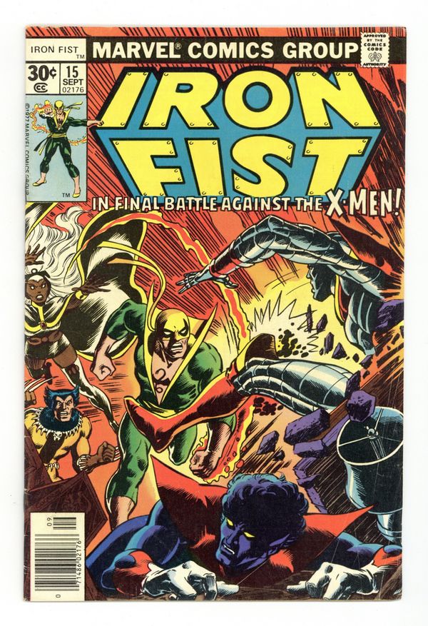 $16.25Final issue. 1st appearance of Bush Master. "Enter the X-Men!" Guest-starring the Uncanny X-Men and Misty Knight. Story by Chris Claremont. Art by John Byrne and Dan Green. Cover by Dave Cockrum. Danny arrives at Misty Knight's apartment to find his friend missing However, this apartment also belongs to one Jean Grey, and a misunderstanding has Iron Fist in pitch battle against the Uncanny X-Men. Meanwhile, Misty Knight is deep undercover infiltrating the organization of none other than Bush Master (Power Man's erstwhile foe)! The subplot of the dragon branded bruiser that has ambushed Iron Fist is wrapped up in Marvel Team-up #63-64, and Iron Fist's further adventures continues in Power Man and Iron Fist #48. Cover price $0.30.