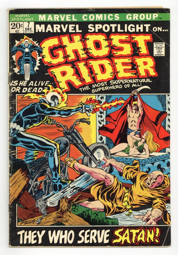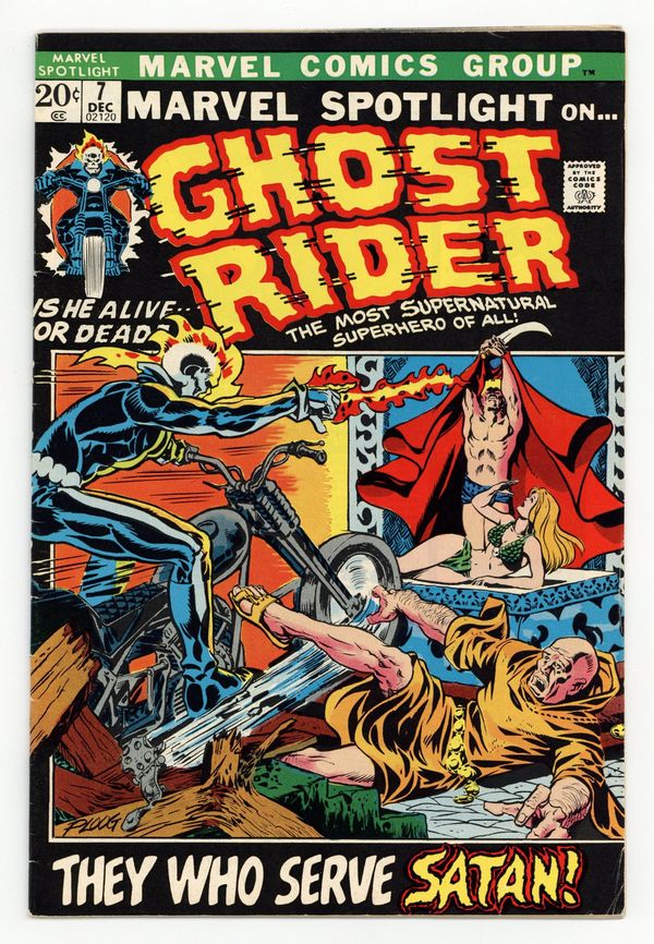 $15.75Cover art by Mike Ploog. Die, Die, My Daughter, script by Gary Friedrich, pencils by Mike Ploog, inks by Frank Chiaramonte; Curly, the leader of the biker gang Satans Saints, tries to sacrifice Roxanne to Satan; cops chase Ghost Rider, who stops to rest in a graveyard. 36 pages, full color. Cover price $0.20.