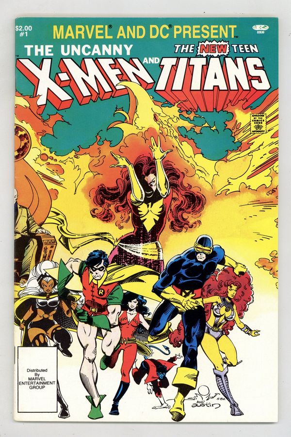 Direct Edition. Darkseid, Dark Phoenix and Deathstroke on one side! The Uncanny X-Men and the New Teen Titans on the other! It's the rumble heard throughout the cosmos in the 64-page "Apokolips...Now." Metron, Professor X, Wolverine, Cyclops, Storm, Nightcrawler, Colossus, Kitty Pryde, Robin, Starfire, Raven, Wonder Girl, Kid Flash, Cyborg, Changeling. Script by Chris Claremont, pencils by Walt Simonson, inks by Terry Austin. Inside front cover by Simonson. Wraparound cover by Simonson & Austin. First printing (a 2nd printing was published, but is marked as a 2nd printing). NOTE: 1st appearance of the Source Wall. Though it had been referred to before it had never been seen until this issue. - Odinson, Lone Star Comics Archivist Cover price $2.00.