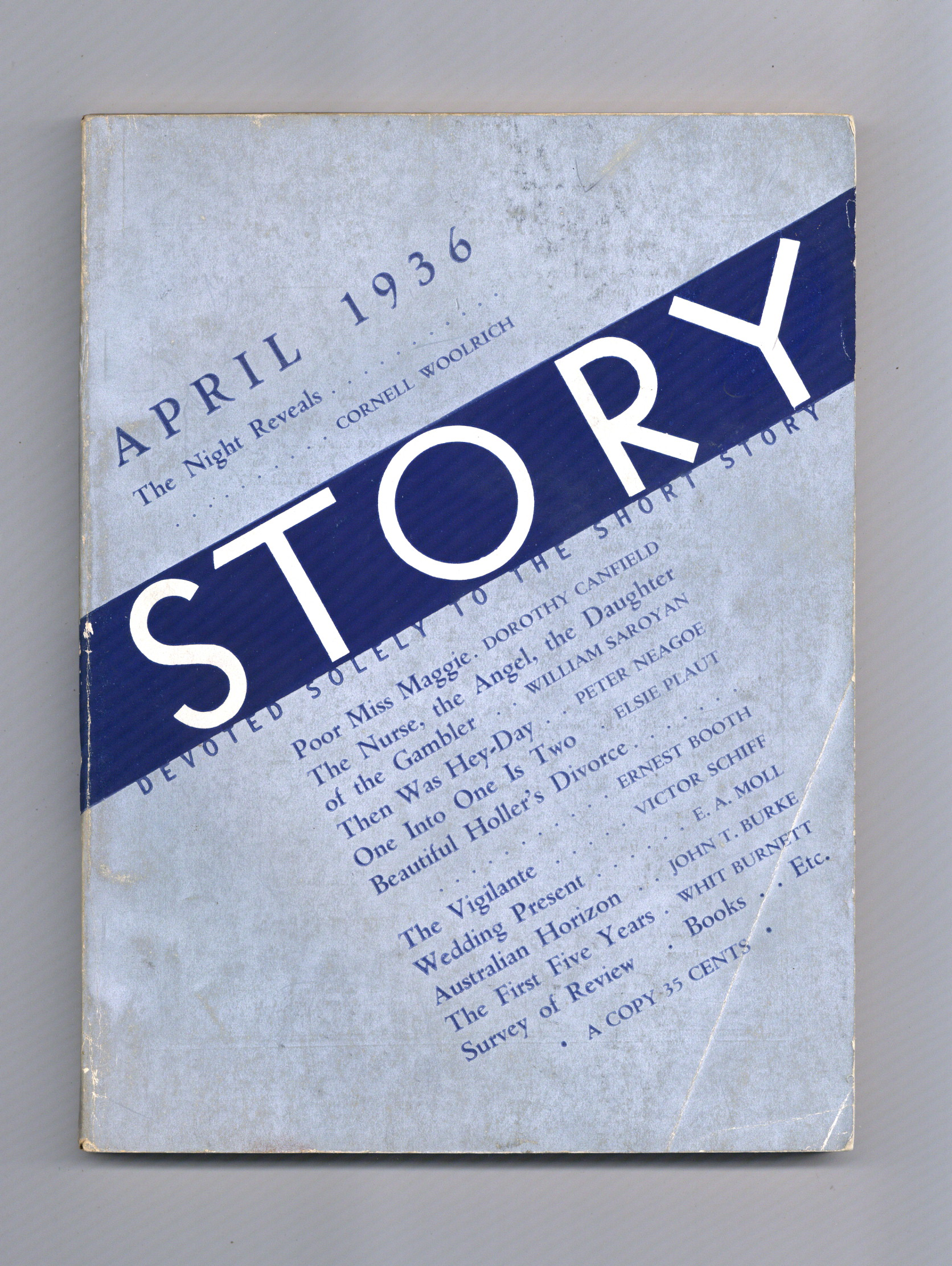 Published Apr 1936 by Story Magazine.$7.00- Front cover detached 10%. Staple rust: Moderate.