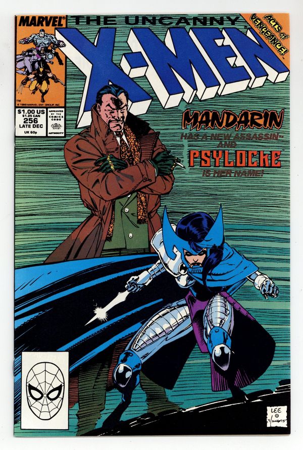 Starts Mar 2 Direct Edition. Acts of Vengeance: Part 1 of 3. "The Key that Breaks the Locke!" Story by Chris Claremont. Art and cover by Jim Lee and Scott Williams. A cabal made-up of some of Marvel's most dangerous villains has gathered together to pull their resources and finally destroy the heroes who oppose them. This inner circle consists of Doctor Doom, Magneto, the Kingpin, Wizard, Red Skull, the Mandarin, and a mysterious benefactor. Their plan is to surprise their enemies with foes whom they've never faced. In this issue, Iron Man's arch nemesis the Mandarin takes on a new apprentice - Lady Mandarin! The X-Men know her as Psylocke. NOTE: 1st appearance of the ninja Psylocke. 36 pgs. Cover price $1.00.
