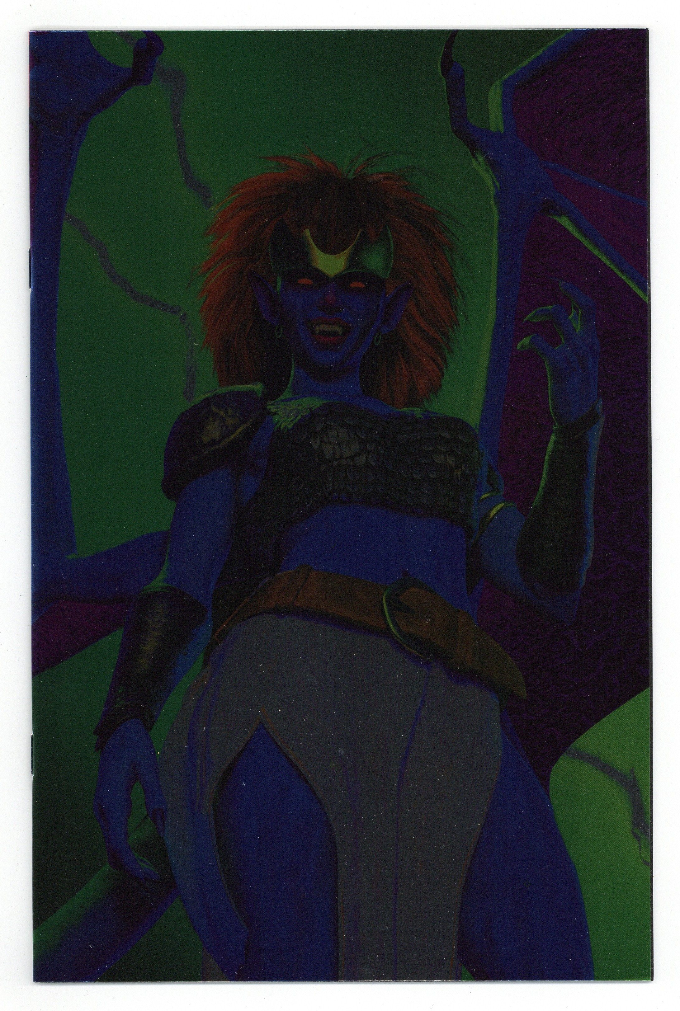Published Jul 2025 by Dynamite Entertainment.$26.99Virgin Foil Cover. Written by Greg Weisman. Art by Frank Paur. Cover by Mark Spears. A THOUSAND YEARS OF ADVENTURE BEGINS HERE! After kicking off with a special prologue story in Dynamite Entertainment's Free Comic Book Day issue #0, the long-awaited tale of Goliath's former love and sworn enemy of the Manhattan Clan gets underway in earnest with a return to the Dark Ages and the aftermath of the destruction of Castle Wyvern! The year is 1093, and the now-immortal Demona has become a lonely and hunted creature. Bereft of both clan and home after her betrayal of Scotland's king, she wanders south to Northumberland in search of a safe haven - only to find that her old nemesis, Canmore, is raiding the city. Canmore's destruction is visited upon human and Gargoyle alike, and when she discovers the depths of his cruelty and the fate of her kind at his hands, Demona's fury sets in motion a cycle of vengeance that will last for centuries - and may yet consume the entire world! 32 pages, full color. Rated T Cover price $29.99.