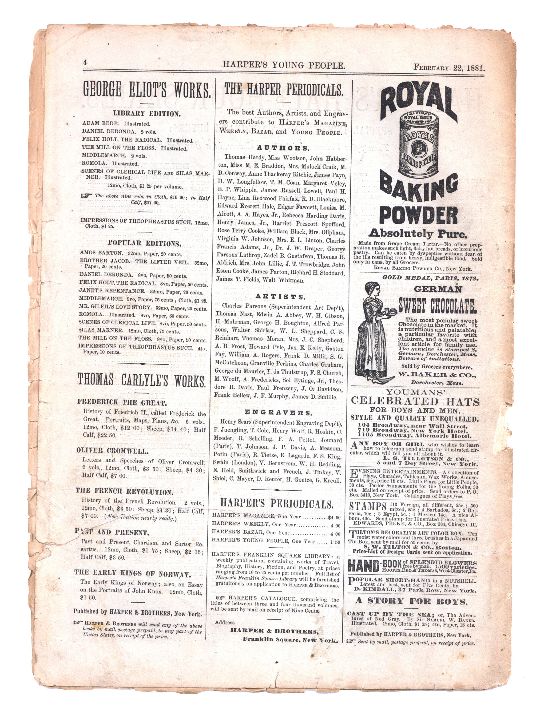 Published Feb 1881 by Harper & Brothers Publish.$16.00If you add this item to your want list, we will email you when it becomes available.