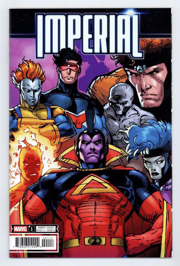 $18.00Limited 1 for 50 Retailer Incentive Variant Cover. Written by Jonathan Hickman. Art by Federico Vicentini. Cover by Jim Lee. JONATHAN HICKMAN, FEDERICO VICENTINI AND IBAN COELLO TAKE ON THE UNIVERSE! A sweeping Marvel cosmic event! Imperial is a story of intrigue, mysteries and war, which takes place against the backdrop of the formation of new galactic order in the Marvel Universe. Featuring HULKS, BLACK PANTHERS, NOVAS, GUARDIANS and COSMIC KINGS and QUEENS. It's the must-read book of the summer! 56 pages, full color. Rated T+ Cover price $6.99.