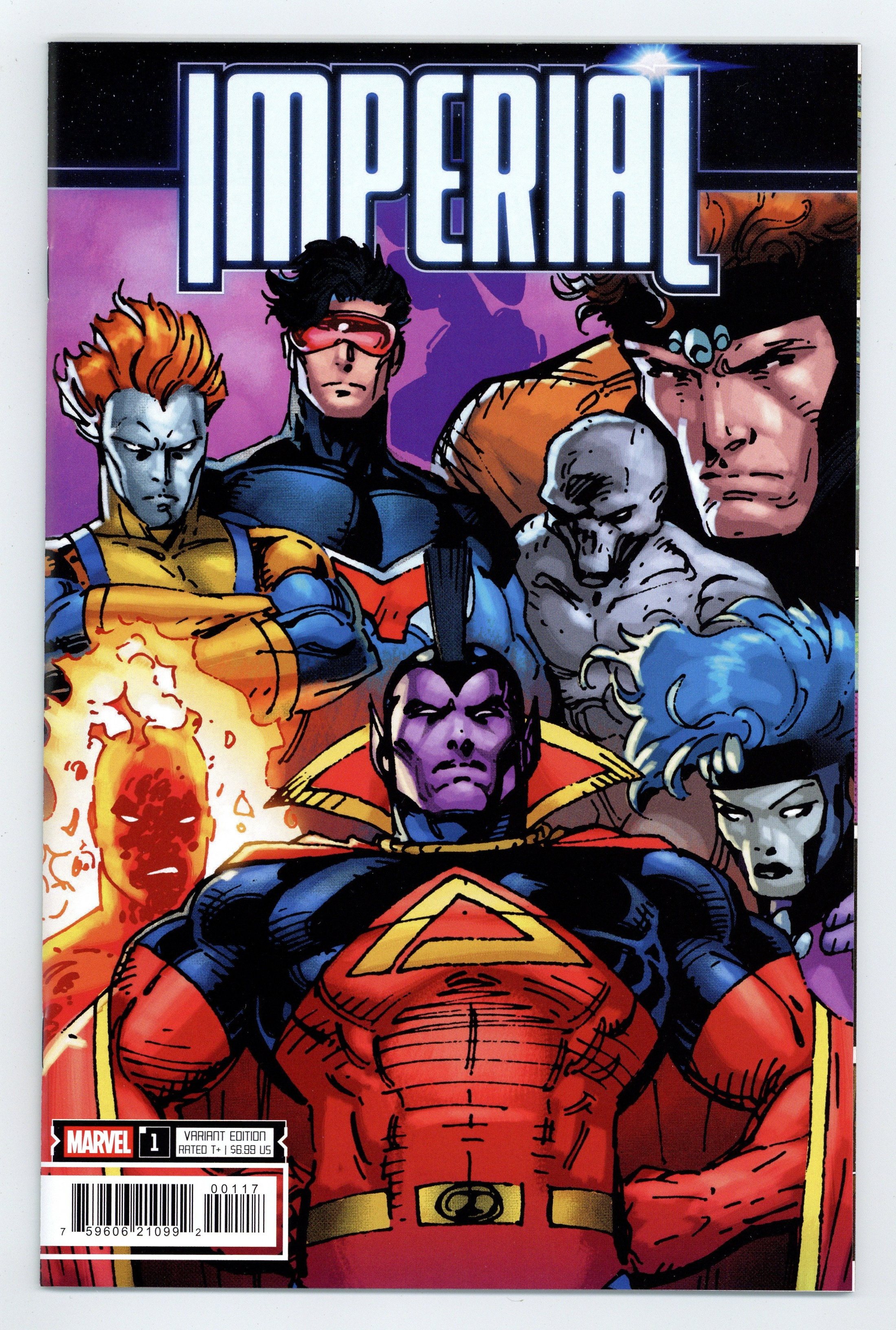 $24.00Limited 1 for 50 Retailer Incentive Variant Cover. Written by Jonathan Hickman. Art by Federico Vicentini. Cover by Jim Lee. JONATHAN HICKMAN, FEDERICO VICENTINI AND IBAN COELLO TAKE ON THE UNIVERSE! A sweeping Marvel cosmic event! Imperial is a story of intrigue, mysteries and war, which takes place against the backdrop of the formation of new galactic order in the Marvel Universe. Featuring HULKS, BLACK PANTHERS, NOVAS, GUARDIANS and COSMIC KINGS and QUEENS. It's the must-read book of the summer! 56 pages, full color. Rated T+ Cover price $6.99.