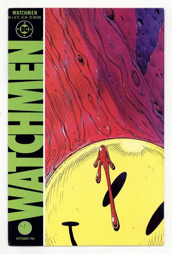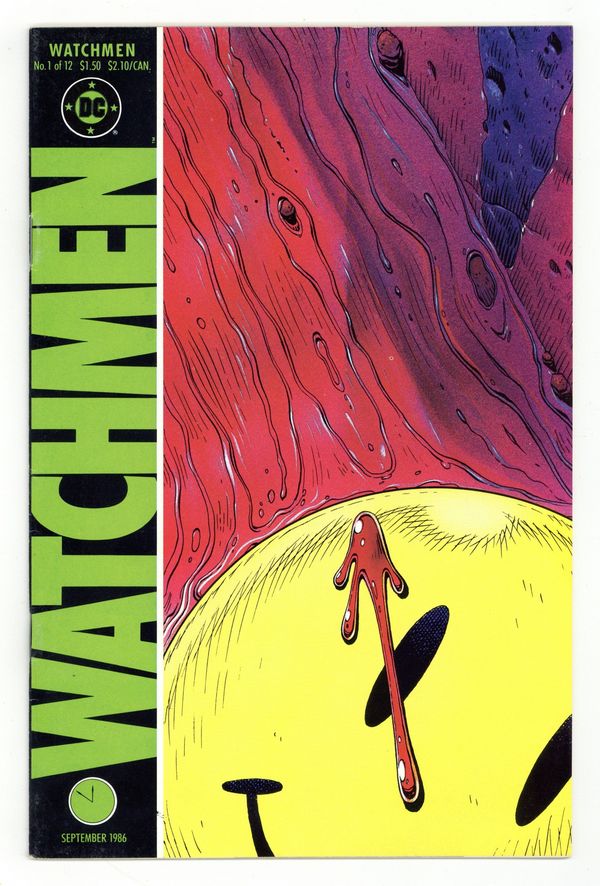 Alan Moore's classic take on the superhero genre. Widely considered to be one of the greatest stories in modern comics history. Art by Dave Gibbons. 1st appearance Rorschach, Ozymandias, Dr. Manhattan, Silk Spectre & Nite Owl. Death of the Comedian. Cover price $1.50.