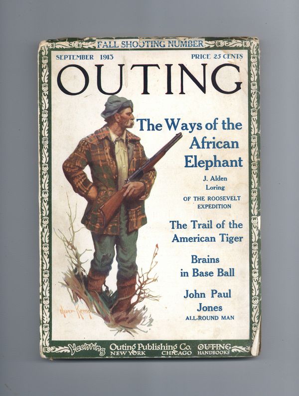 Outing Magazine presented a variety of articles and fictional stories about camping, hunting, and sports. Cover price $0.25.
