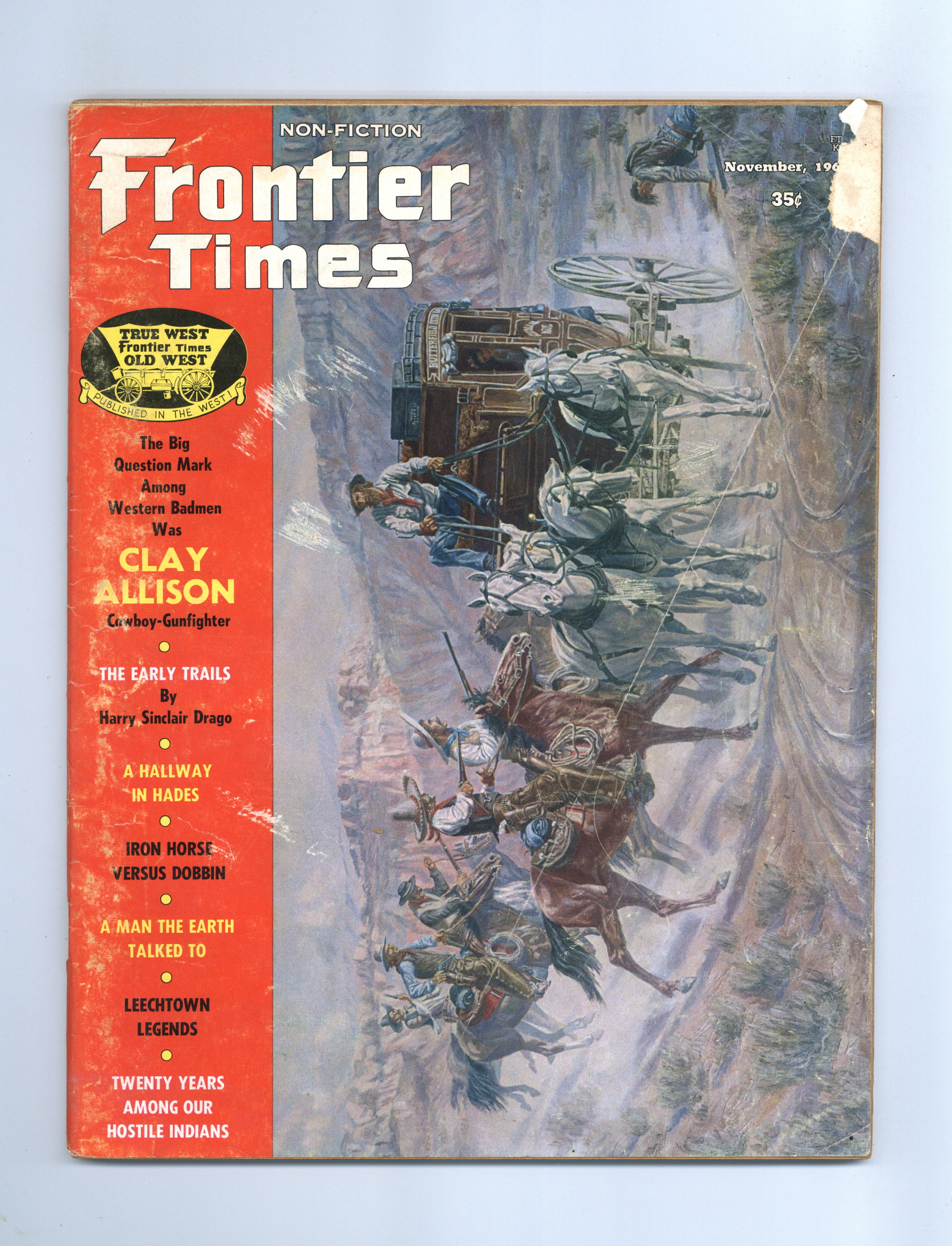 Vol. 40, No. 6 - November, 1966. Magazine of true stories of the American Frontier. Features illustrations and photos of the old west. 8.25" x 11", 72 pages, B&W. Cover price $0.35.