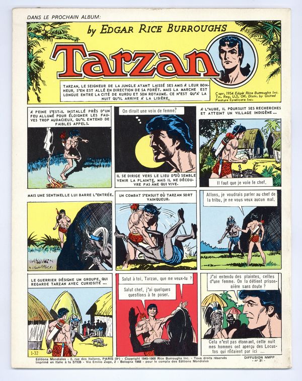 Published 1968 by Editions Mondiales.$32.00French language reprints of Tarzan. 8.25" x 10.5", 24 pages, full-color.