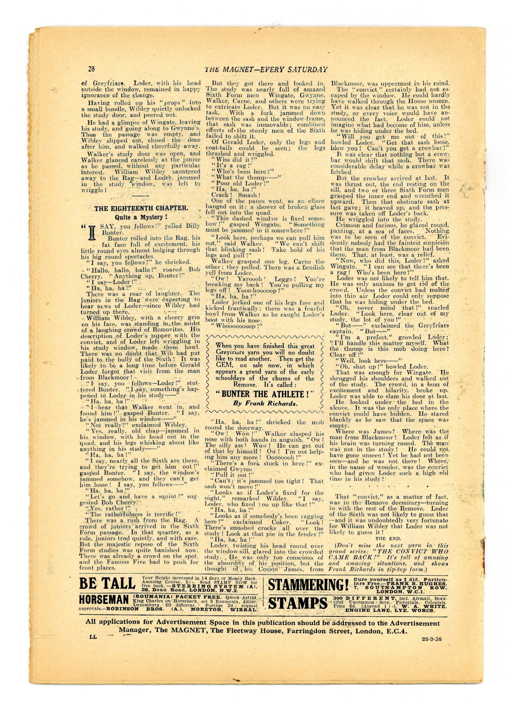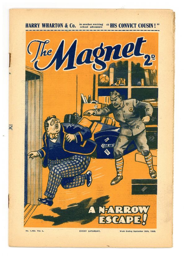 Vol. , No. 1493 - September 26, 1936. Weekly British publication that ran for nearly 1,700 issues. Featured the anti-hero Billy Bunter of the Greyfriars School, along with serialized shorts. NOTE: This publication contains negative racial and cultural depictions. It reflects some attitudes of the era in which it was published that would not be acceptable today. 7.5" x 11", 28 pages, B&W.