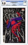 Written by Joe Kelly. Art by Pepe Larraz, John Romita Jr. Cover by Sanford Greene. SPIDEY GOES COSMIC! A tale of two Spider-Men...One Spider-Man swings around New York City meting out justice in an unfriendly matter. Another Spider-Man is found in a distant solar system running with strange companions. One such companion? A stranger named SYMBIE making his FIRST APPEARANCE! The next major chapter in Spider-Man's life begins here! 64 pages, full color. Rated T Cover price $7.99.