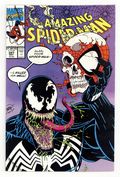 Tags: Marvel Legacy Numbering: Amazing Spider-Man (part 347), Spider-Man$28.00Direct Edition. "The Boneyard Hop!" Part 2 of 2. Script by David Michelinie. Pencils by Erik Larsen. Inks by Randy Emberlin. Cover by Erik Larsen and Randy Emberlin. On a deserted island, the Amazing Spider-Man wages a desperate battle for survival vs. the vicious Venom! The wall-crawler is fighting for his life! While Venom is fighting for his death! And this time there isn't any help or rescue on the way! As shown on the twisted cover, Venom plans to quote Hamlet once the battle is over! If the spectacular one doesn't want to play the part of Yorick; he better move fast! To thine own self be true, web-slinger! Cameo appearances by Mary Jane Watson, Willie Lumpkin, Aunt May, Flash Thompson, and the Black Cat. (Notes: Venom appears next in Darkhawk 13 & 14. This two-part story was reprinted in the trade paperbacks: Spider-Man: Venom Returns (1993) and Spider-Man: The Vengeance of Venom (2011).) 36 pages. Cover price $1.00. Cover price $1.00.