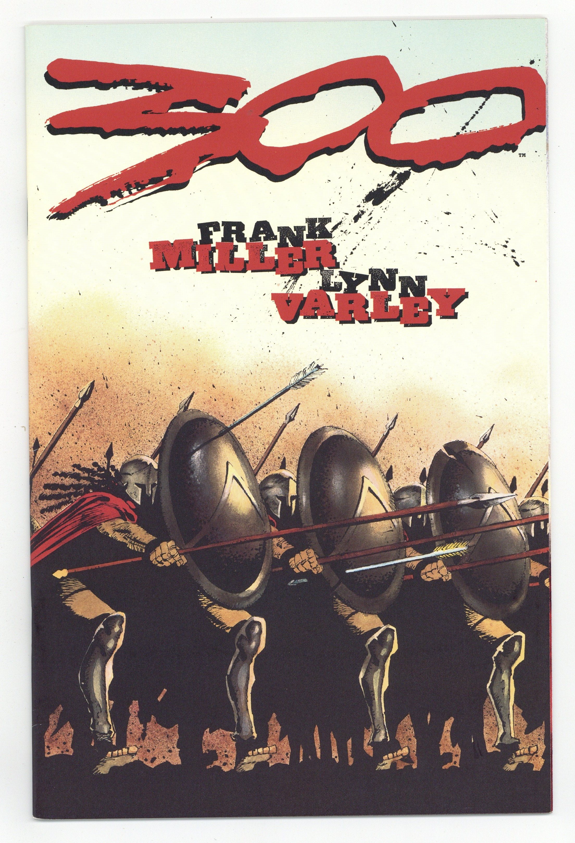Published May 1998 by Dark Horse.$26.001st Printing – Chapter 1: Honor - Story and art by Frank Miller. Color by Lynn Varley. A force of men is assembled, so massive it shakes the earth with its march -- an army, vast beyond imagining, poised to devour tiny Greece, to snuff out the world's one hope for reason and justice. Only three hundred brave souls block its dash. But they are more than men . . . they are Spartans. The first full-color project by Frank Miller for Dark Horse, painted by Lynn Varley (Ronin, The Dark Knight Returns). Cover price $2.95.