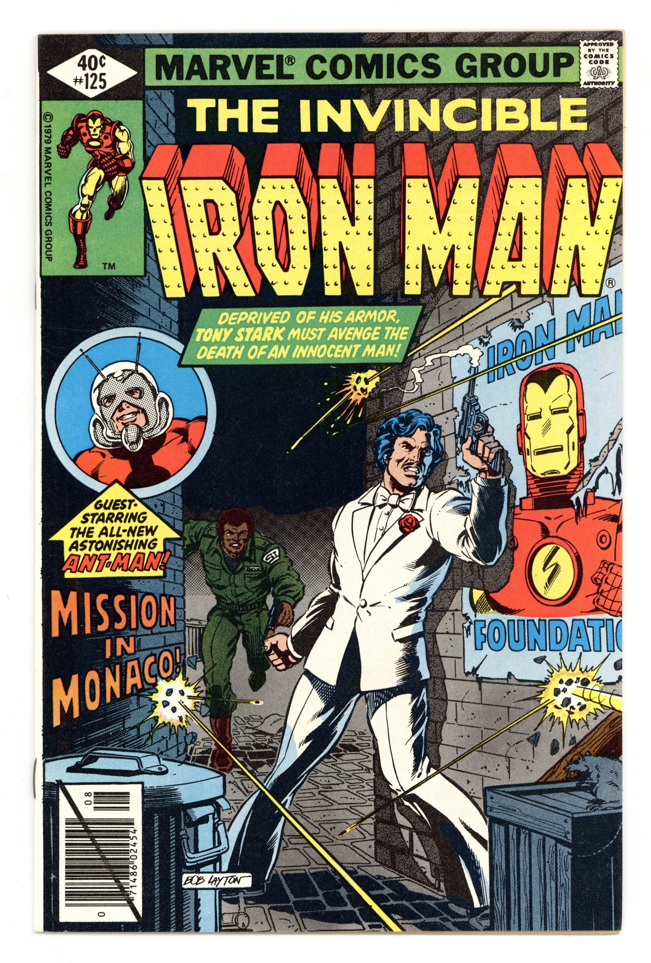 Direct Edition. "The Monaco Prelude" Part 3 of 5. Guest-starring Captain America and Ant-Man (aka Scott Lang). Plot by David Michelinie and Bob Layton. Script by David Michelinie. Art by John Romita Jr. (breakdowns) and Bob Layton (finishes). Cover by Bob Layton. In a shocking development, Iron Man killed the Carnelian ambassador with an inadvertent repulsor ray blast last issue. And now Tony Stark must hand over his armor to the police and figure out what to do next! With assistance from Ant-Man and the Sentinel of Liberty, Tony learns that a mysterious man in Monaco is responsible for the deadly malfunction of his armor! So the golden avenger (sans armor) and Rhodey fly to Monte Carlo to clear Iron Man's name! This won't be Tony's typical vacation on the French Riviera! Cameo appearances by the Beast, Falcon, Ms. Marvel, Vision, Wasp, Whiplash, Ed Koch, Bethany Cabe, and Justin Hammer. 32 pages. Cover price $0.40.