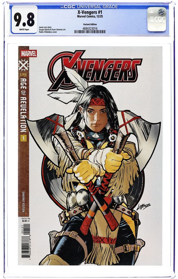 (W) Jason Loo (A) Sergio Dávila (CA) Pablo Villalobos EARTH'S MIGHTIEST…HATED AND FEARED! X YEARS LATER, Earth still needs the Avengers…but what happens when those who are left have transformed into mutants?! Dani Moonstar leads a new team of Avengers (Hawkeye, Vision, Water Widow, Shang-Chi, Variable Man and Cannonball) to protect the planet! But can these "X-Vengers" protect all of Earth, including the Revelation Territories?! 32 pages, full color, rated T+. Cover price $3.99.