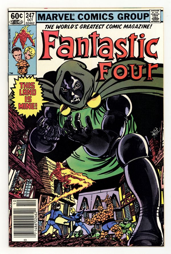 Tags: Fantastic Four$28.00Newsstand Edition. "This Land is Mine!" Part 2 of 2. Script and Art by John Byrne. Cover by John Byrne. Since losing the throne of Latveria in Fantastic Four 200, Doctor Doom has been driven by one thing...getting it back! Now the deposed monarch has enlisted the FF (via his inhibitor ray) to help him regain his country! When Reed, Sue, Ben, and Johnny arrive in Latveria, they are shocked by the deplorable condition of the capital. Could Doctor Doom actually be the solution to Latveria's problems? Victor Von Doom and Zorba will battle to death for control of Latveria! First appearance of Kristoff. (Note: The letters page includes a joint letter from comics creators Richard Pini and Wendy Pini.) 36 pages Cover price $0.60.