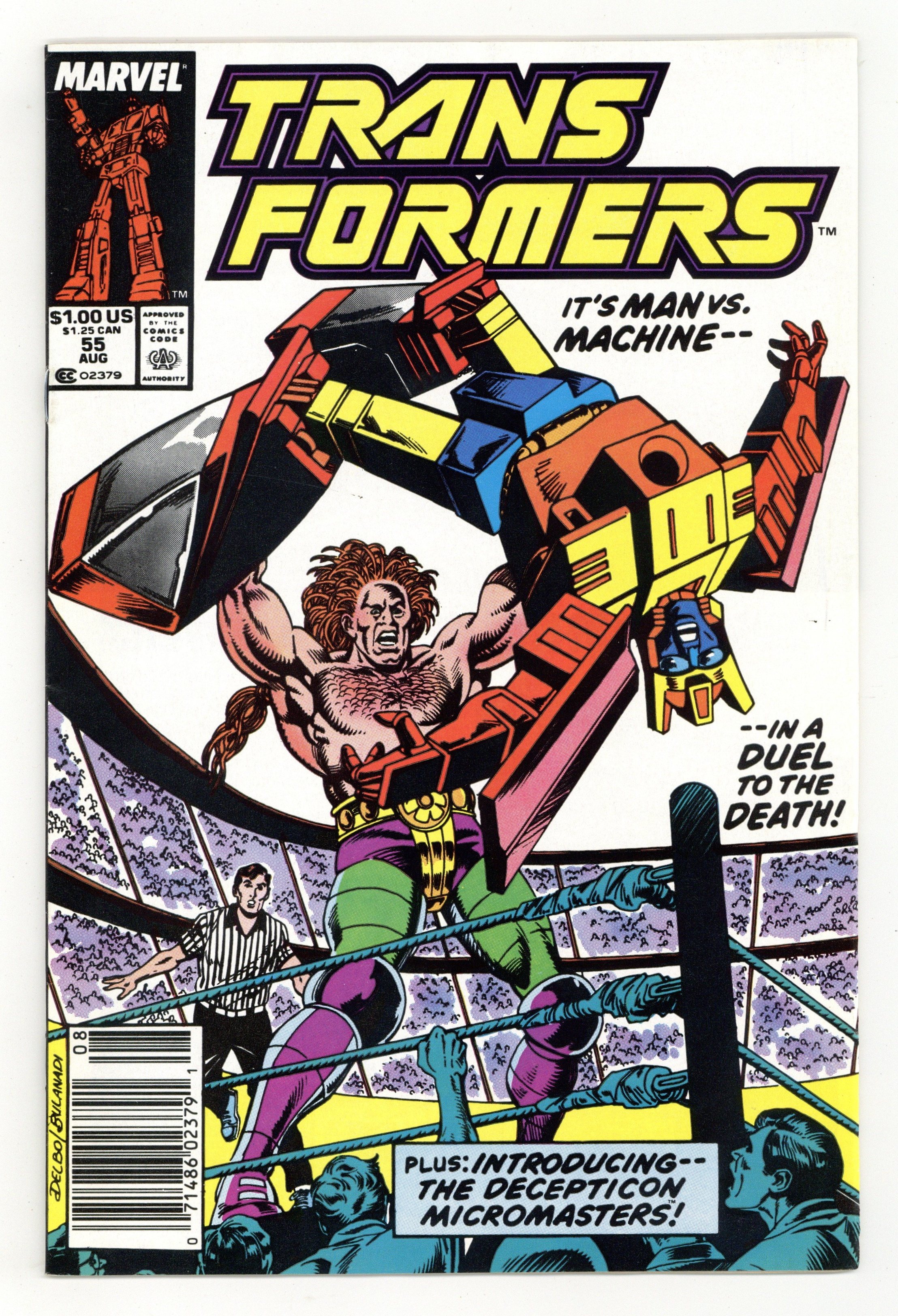 Tags: Transformers$36.50Newsstand Edition. It's man vs. machine...in a duel to the death! Plus, introducing the Decepticon Micromasters! Written by Bob Budiansky, with art by Bob Budiansky, Jim Fern and Mike Gustovich. Cover by Jose Delbo and Danny Bulanadi. Cover price $1.00.