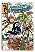 Tags: Marvel Legacy Numbering: Amazing Spider-Man (part 299), Spider-Man$125.00Direct Edition. "Survival of the Hittist!" Part 2 of 2. Script by David Michelinie. Pencils by Todd McFarlane. Inks by Bob McLeod. Cover by Todd McFarlane. After their waterfront arms theft goes awry, the Life Foundation turns the tables on Chance! The mysterious survivalist group abducts the mercenary and takes him to their secret headquarters in northern New Jersey! But thanks to a well-placed spider tracer, the web-slinger infiltrates the foundation's secluded colony the next day...and rescues Chance! So now the adversaries of 24 hours ago suddenly become allies to avoid death...courtesy of the Life Foundation! First appearance (and cameo on the last page) by Venom. Cameo appearances by Eddie Murphy, Paul Schaffer, and Joe Robertson. Last 75¢ issue. 36 pages, full color. (Note: Chance returns in Amazing Spider-Man 336.) Cover price $0.75.