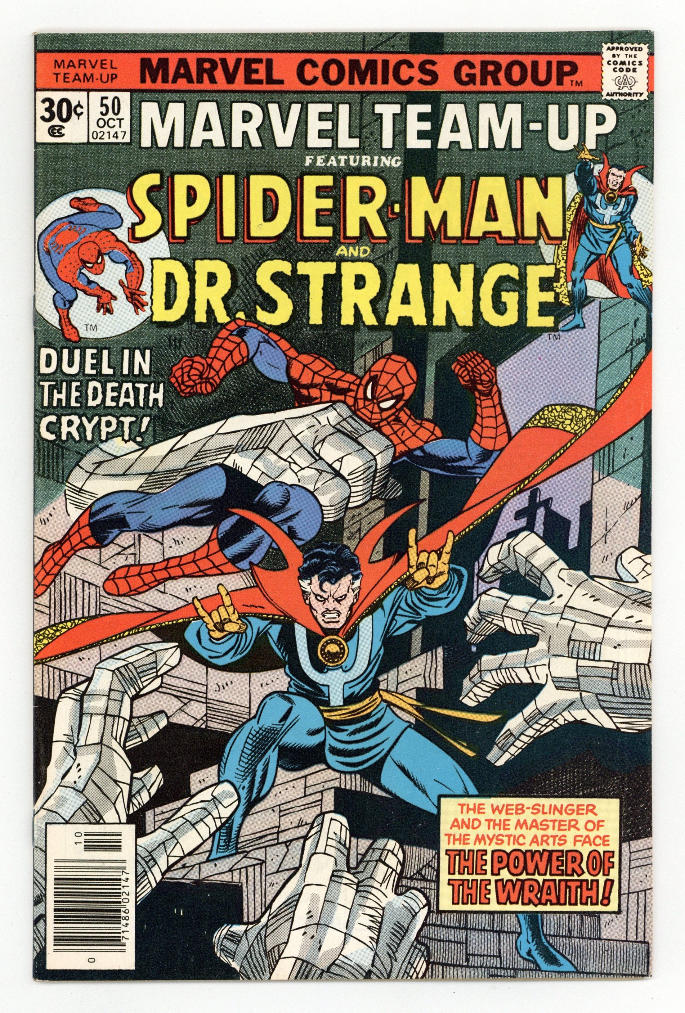 Tags: Doctor Strange, Spider-Man$10.00"The Mystery of the Wraith!" Part 3 of 4. Guest-starring Spider-Man, Doctor Strange, and Iron Man. Script by Bill Mantlo. Art by Sal Buscema (breakdowns), Mike Esposito (finishes), and Dave Hunt (finishes). Cover by Gil Kane and Dan Adkins. The wall-crawler needs help investigating the apparent death of Brian DeWolff two years ago. So he turns to the Master of the Mystic Arts for assistance! The trail of the Wraith leads to the DeWolff family crypt...but who or what is waiting inside? Captain Jean DeWolff enters first, then minutes later Spider-Man and Doctor Strange, and finally the Invincible Iron Man! It's a no-holds-barred battle down below! Origin of the Wraith. 36 pages. Cover price $0.30.