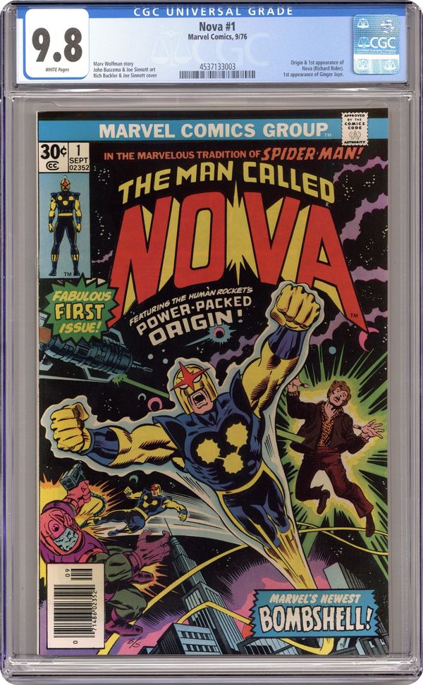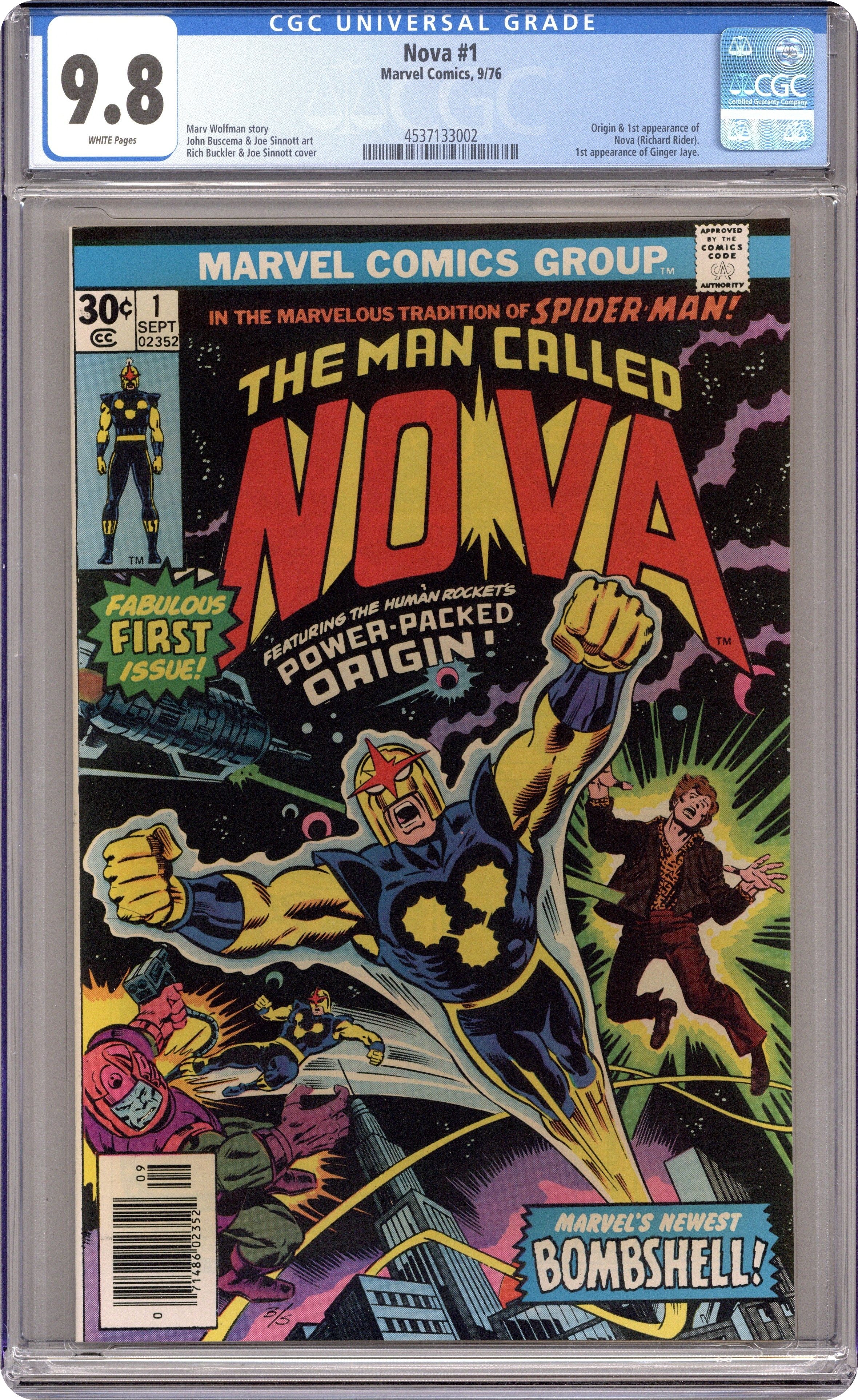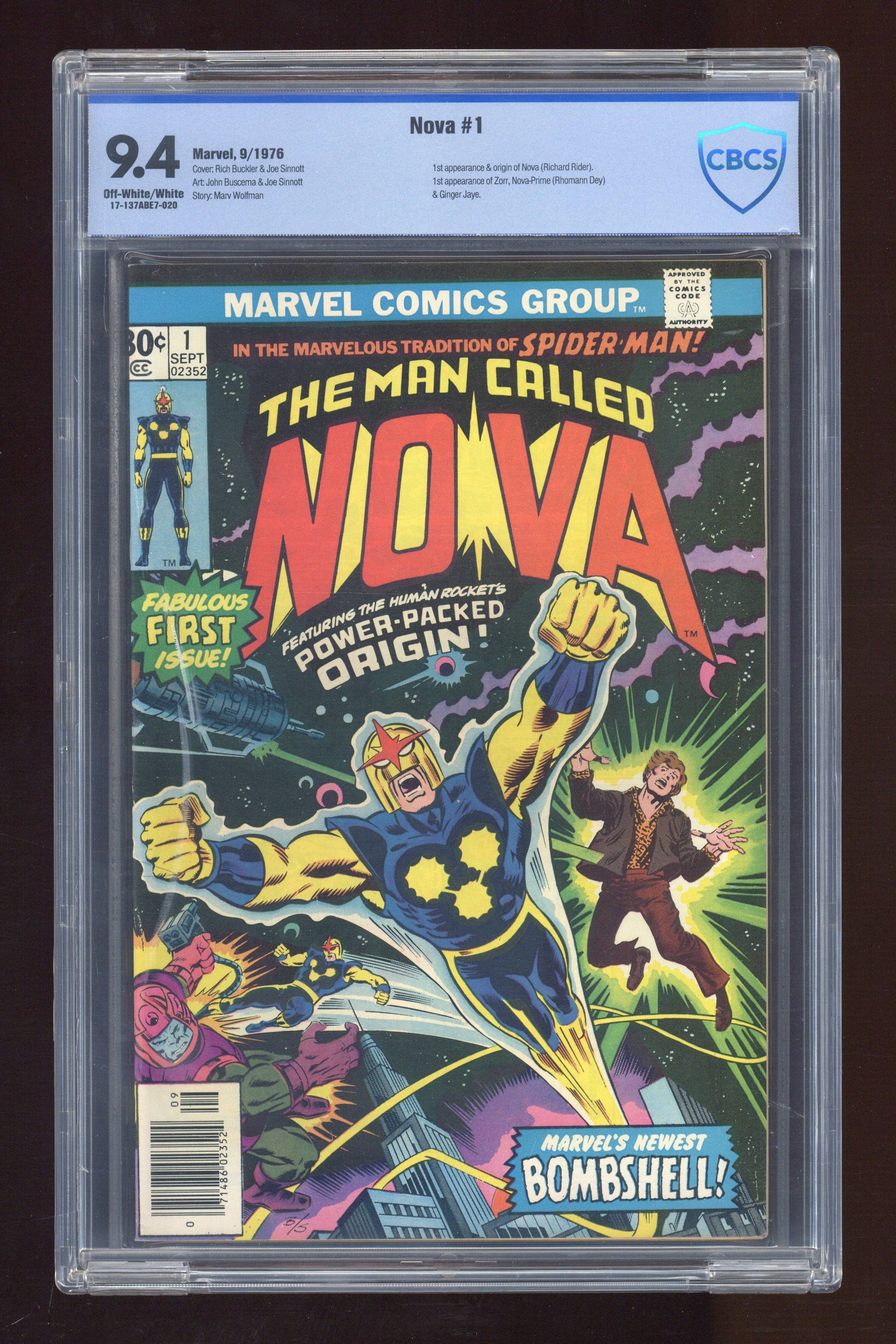 Ends Feb 2 9:08 PM CST Bid History 11 bids Current Bid $185 Your Secret Max Bid If you'd like to bid, please log in or register. Written by Marv Wolfman. Pencils by John Buscema. Inks Joe Sinnott. When a dying alien passes on his super-powers to Earth teenager Richard Rider, Rider becomes the man called Nova, the human rocket! In the marvelous tradition of Spider-man, Nova must now stop the murderous alien known as Zorr, or Earth is doomed! Note: First appearance of Nova. 36 pages, full color. Cover price $0.30.