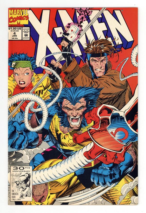 Tags: X-Men$8.80Direct Edition. Cover pencils by Jim Lee, inks by Scott Williams. The Resurrection and the Flesh, script by Jim Lee (Plot) and John Byrne, pencils by Jim Lee, inks by Scott Williams. First appearance of Omega Red! The Hand brings Omega Red (formerly Arkady) back to life; The X-Men play basketball, mutant style; Moira agonizes over her part in the Magneto fiasco and leaves; Gambit and Rogue are on the way to a chaperoned date when Omega Red and the Hand interfere. Cover price $1.00.